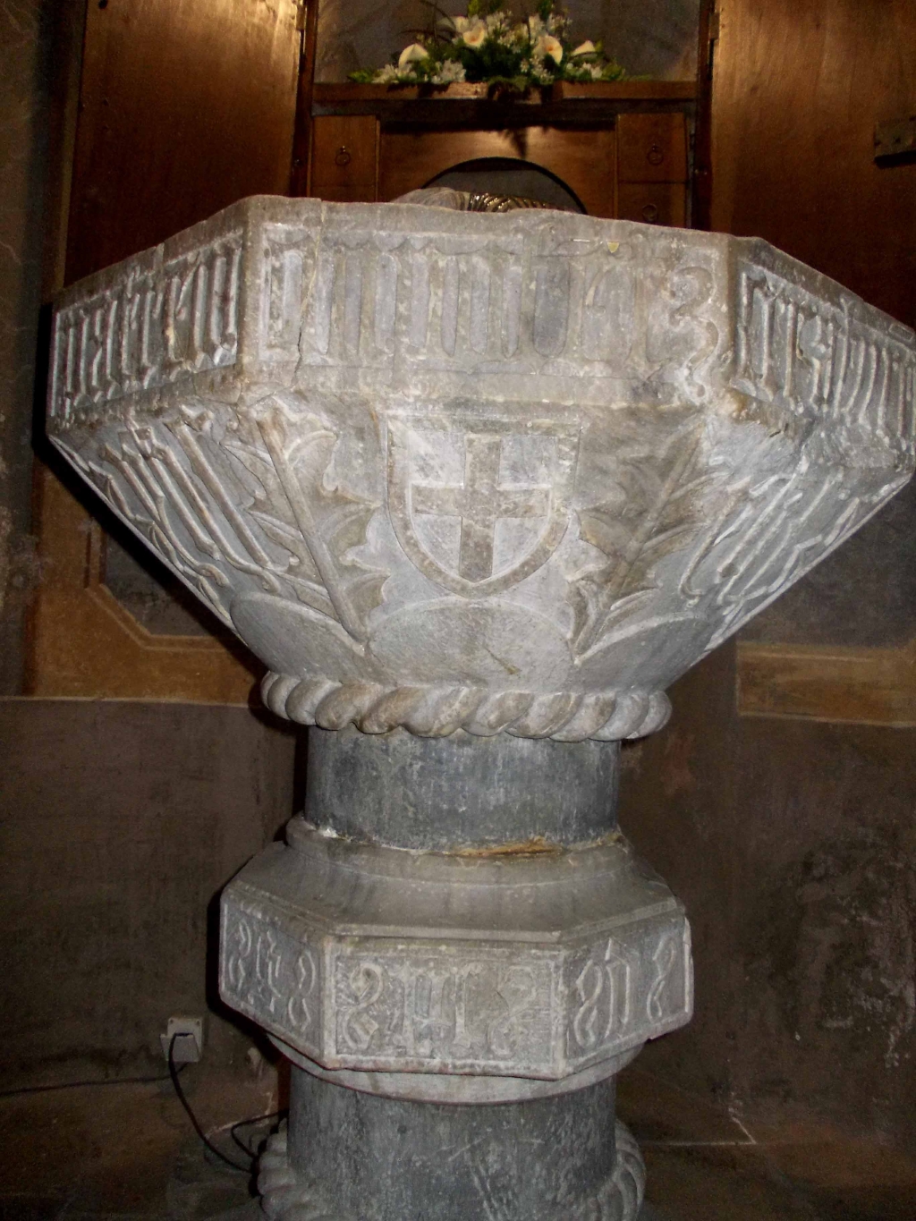 Cuneo - Parrocchiale di Sant'Ambrogio - Fonte battesimale - G(ratia) P(ena) D(om) - Mario Falchi - 2025