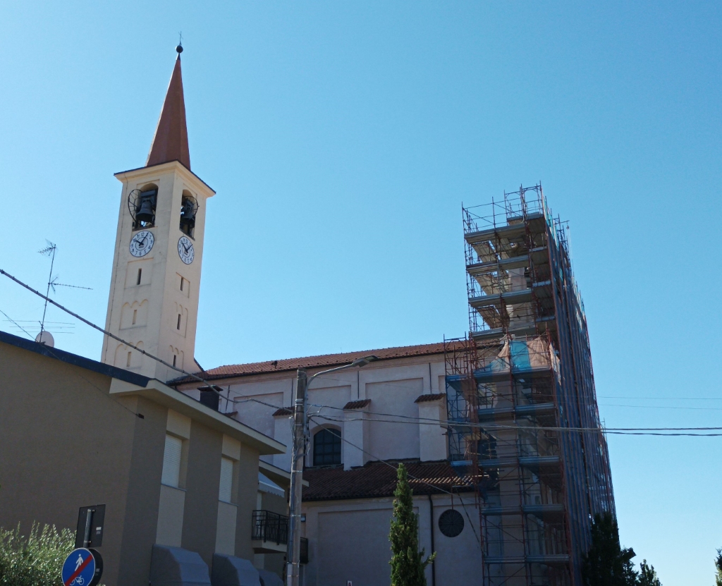 Frassino - Parrocchiale di Santo Stefano - Facciata e campanile (in restauro) - Marco Actis Grosso - 2025