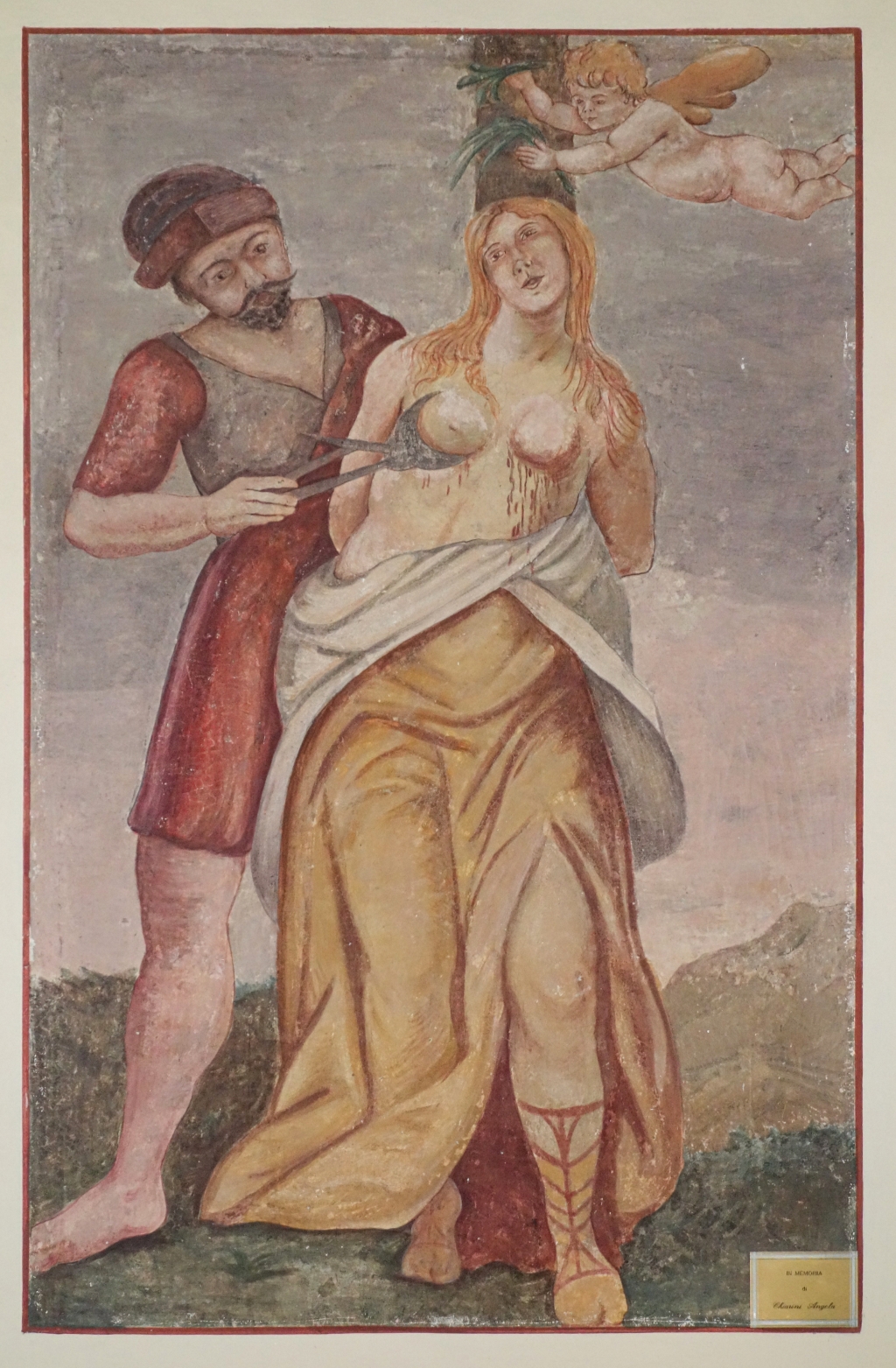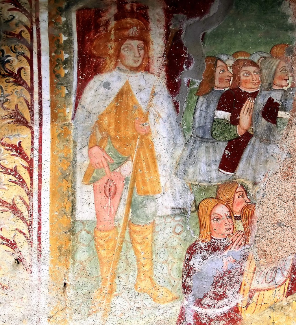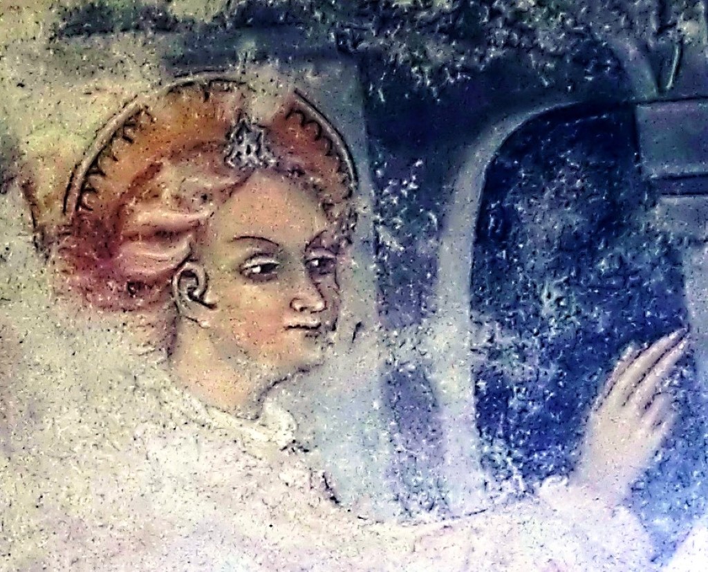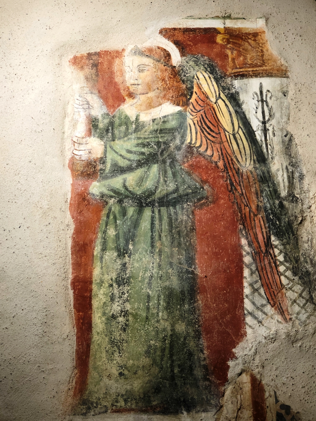 Pagno - Chiesa o Monastero dei Santi Pietro e Colombano - Affresco Angelo con i colori ricostruiti - Mario Falchi - 2023