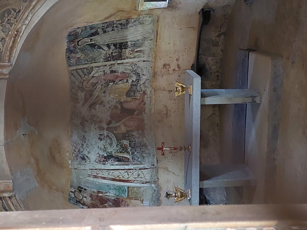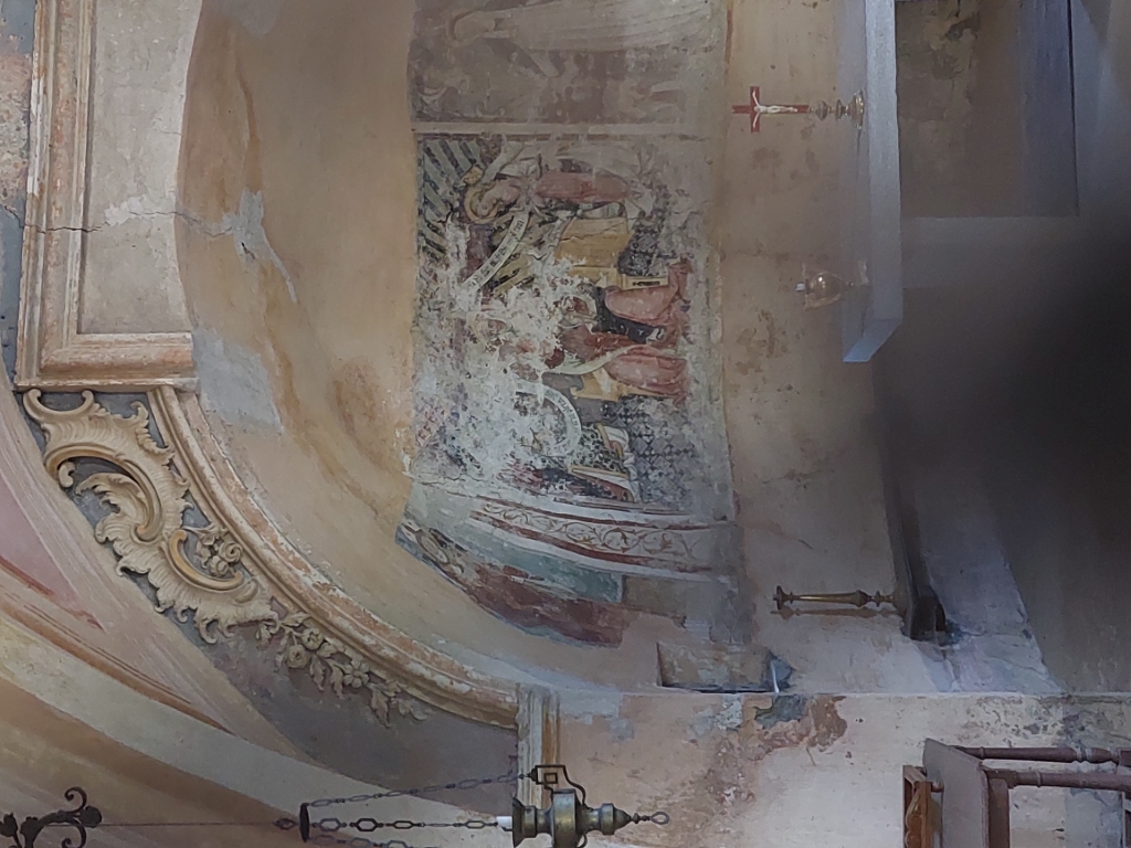 Pagno - Chiesa o Monastero dei Santi Pietro e Colombano - Tracce di affresco sull'antico arco trionfale nel sottotetto - Mario Falchi - 2023