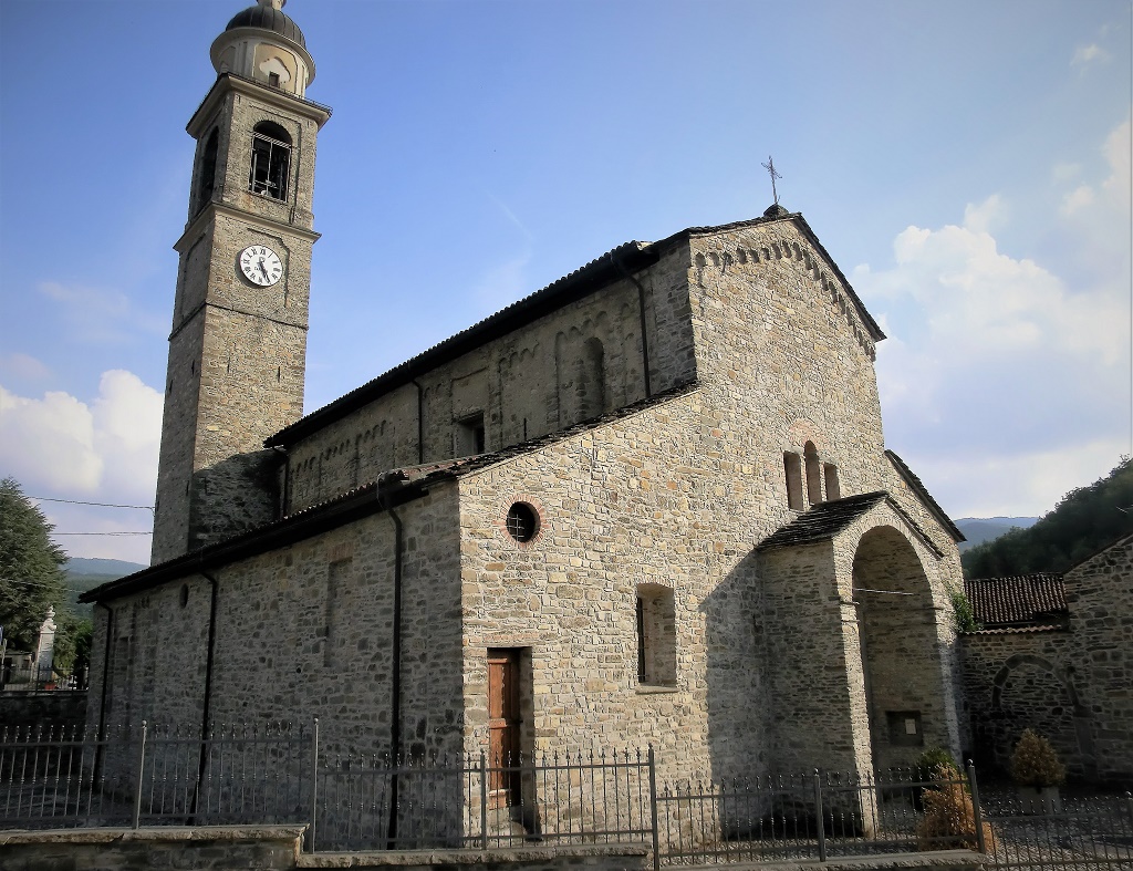 Notizie generali: monumento nazionale, ampliamento della pieve romanico-gotica, poi rimaneggiata con l'aggiunta del presbiterio e di due cappelle. Durante scavi sono venuti alla luce capitelli anteriori al X secolo e, dietro l'altare, un tratto di pavimento a mosaico. All'interno tavolette di legno e tela della metà del '600 rappresentante la madonna del Rosario. |