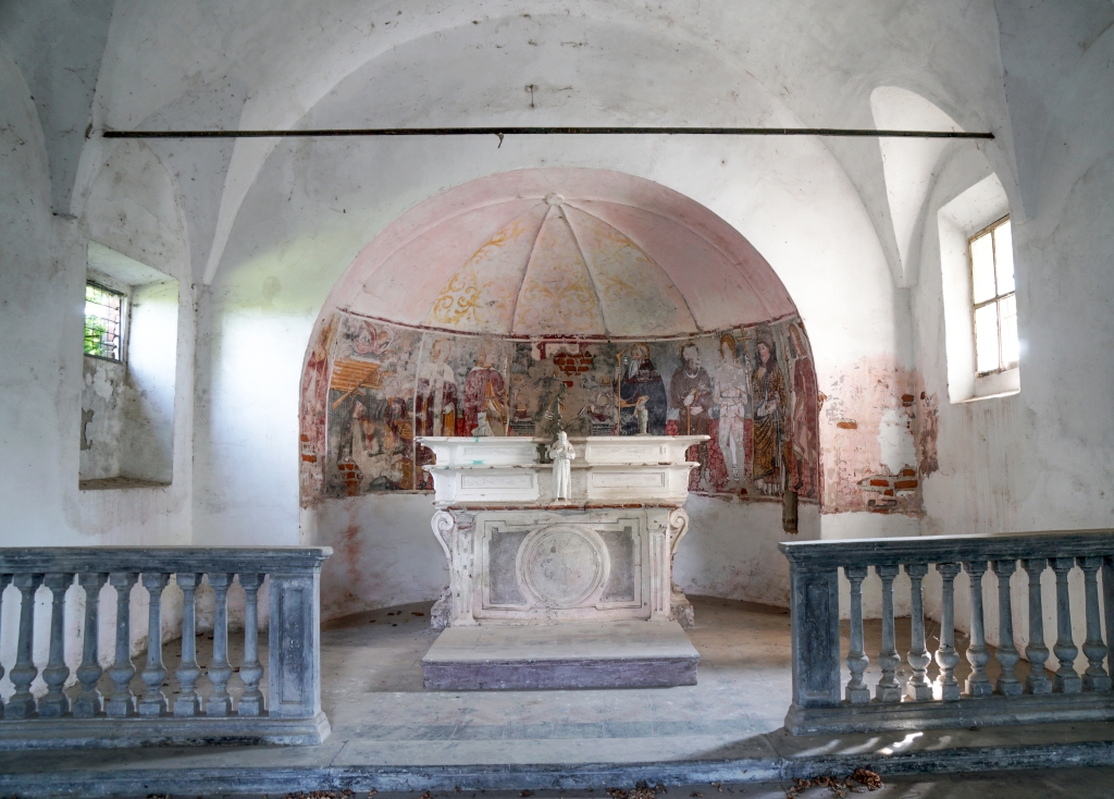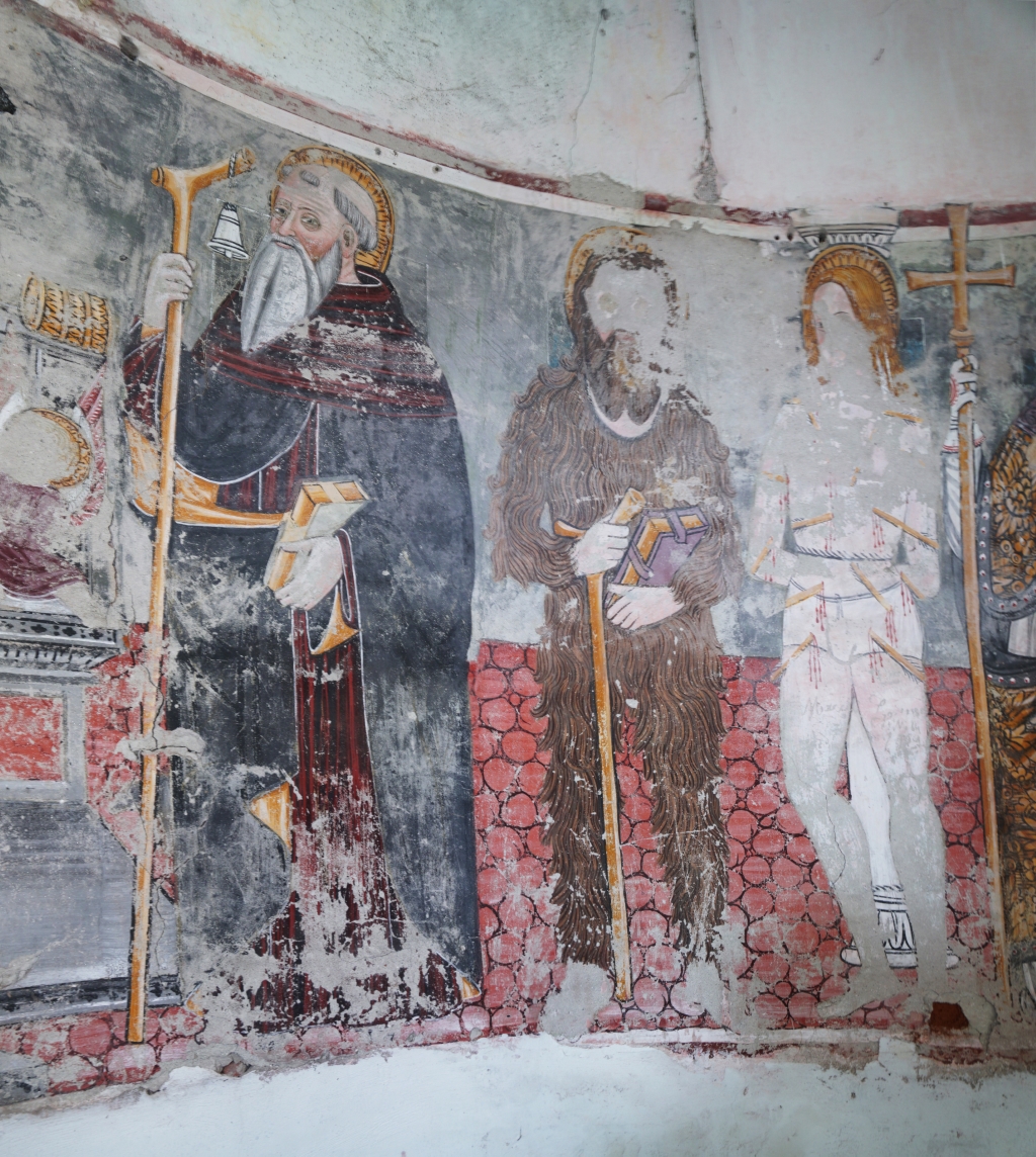 Interno: affreschi del '400 tra cui San Rocco, Sant'Antonio Abate, San Sebastiano e altri santi. |