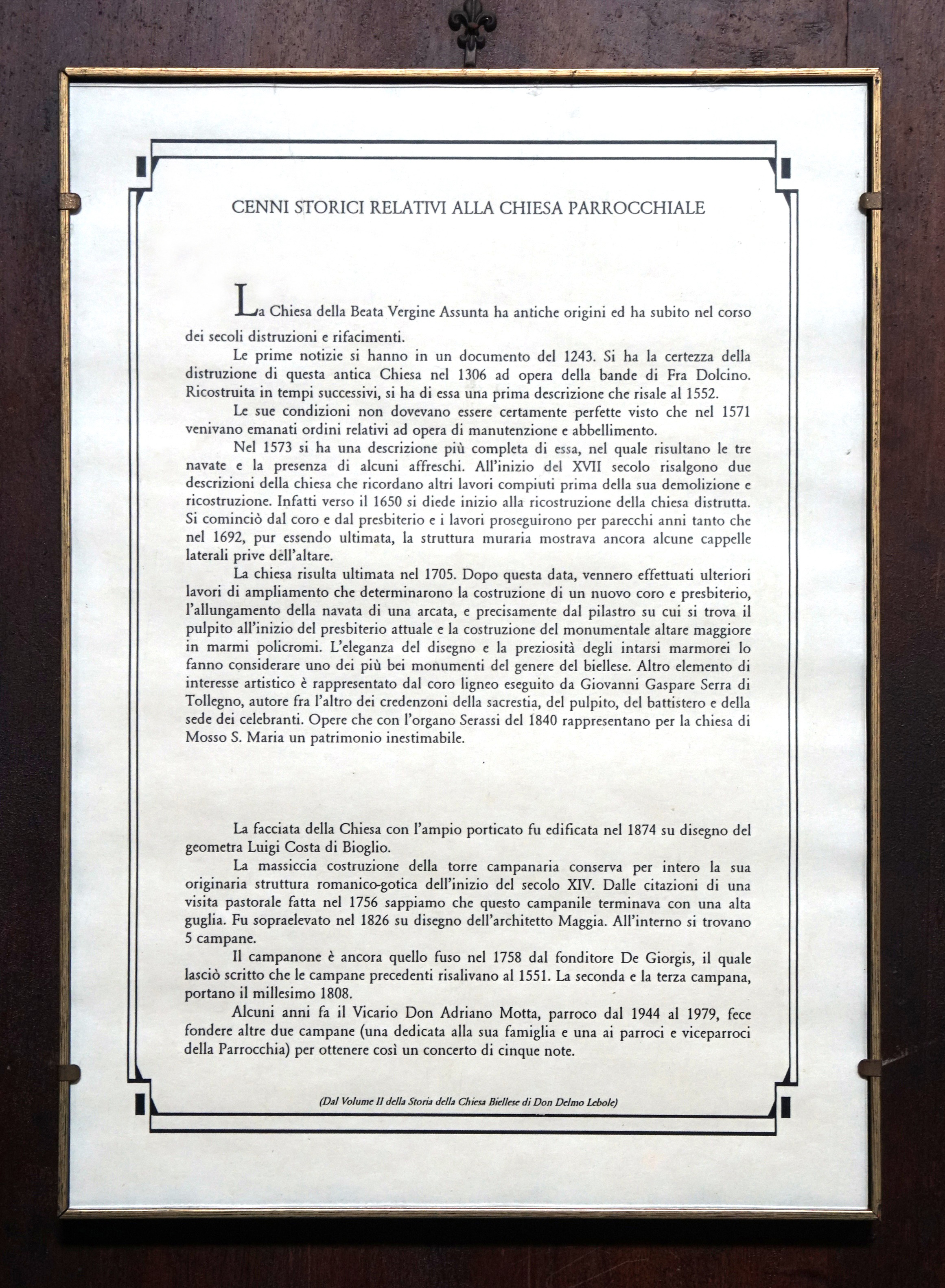 ♦ http://www.comune.mosso.bi.it/Guidaalpaese/tabid/11636/Default.aspx?IDDettaglio=4410 - Verificato il 05/09/2021 ♦ https://www.parrocchiasmamosso.it/storia-completa-della-parrocchia.html - Verificato il 15/11/2023 ♦ https://www.parrocchiasmamosso.it/la-chiesa.html#:~:text=La%20chiesa%20parrocchiale%20di%20Mosso,dei%20seguaci%20di%20Fra'%20Dolcino - Verificato il 15/11/2023 |
