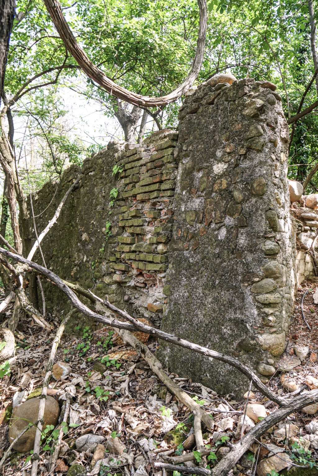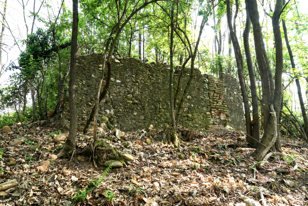Esterno: resti di muratura tra la boscaglia. |