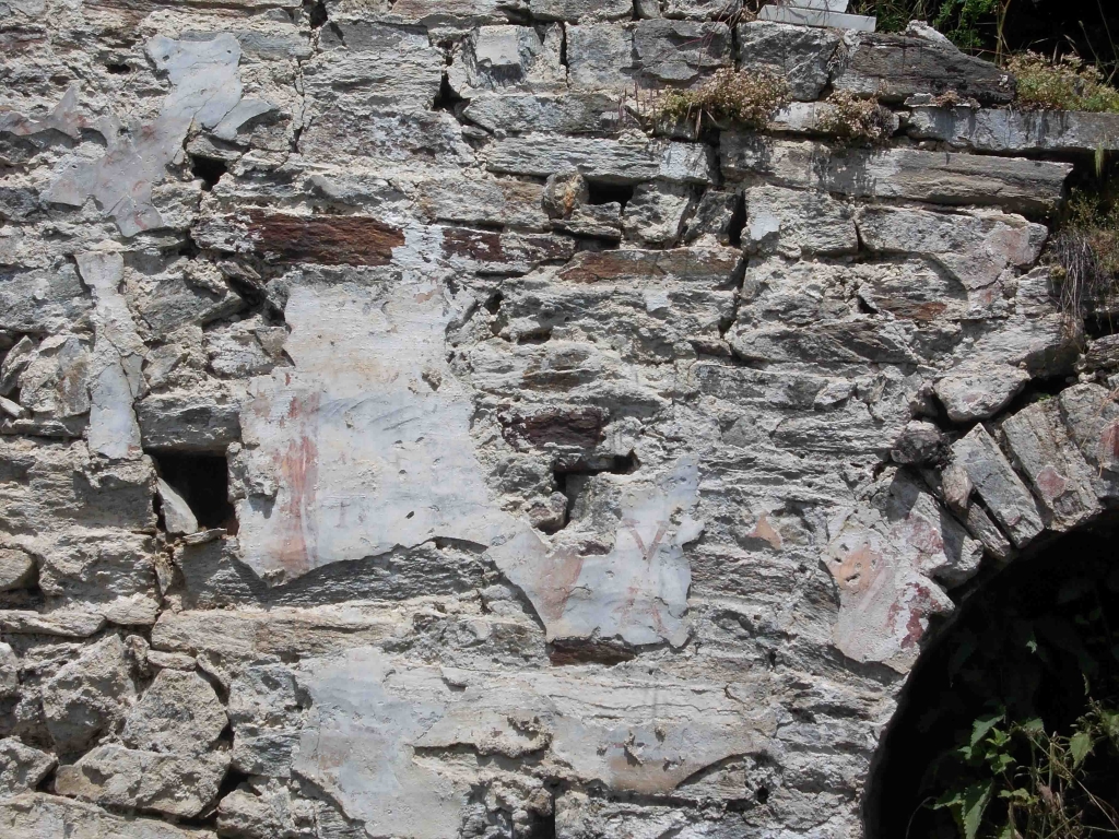 Esterno: Resti della muratura delle due navate e scarse tracce di affresco. |