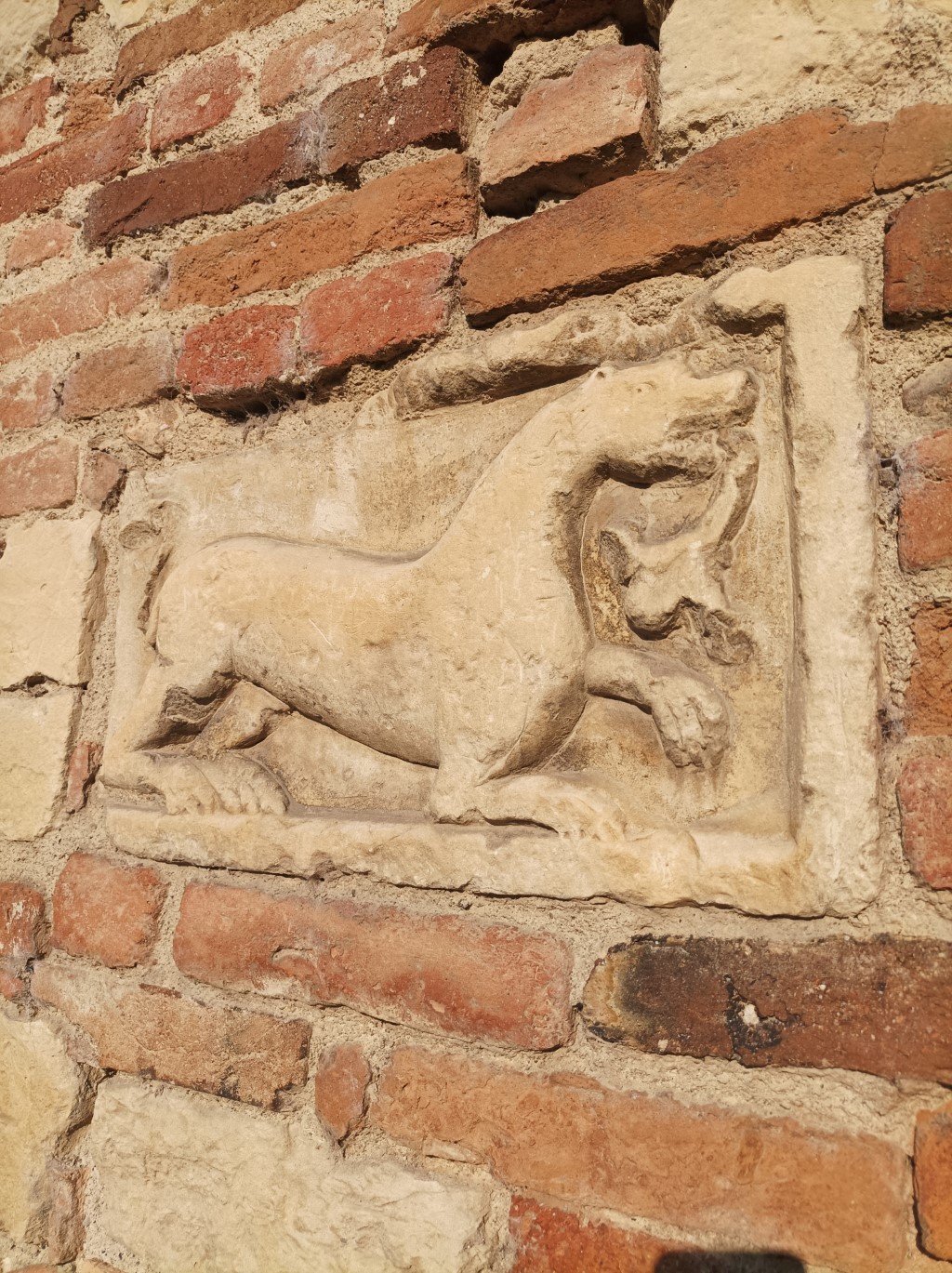 Esterno: sui fianchi, murati, rilievi di epoca romanica. |