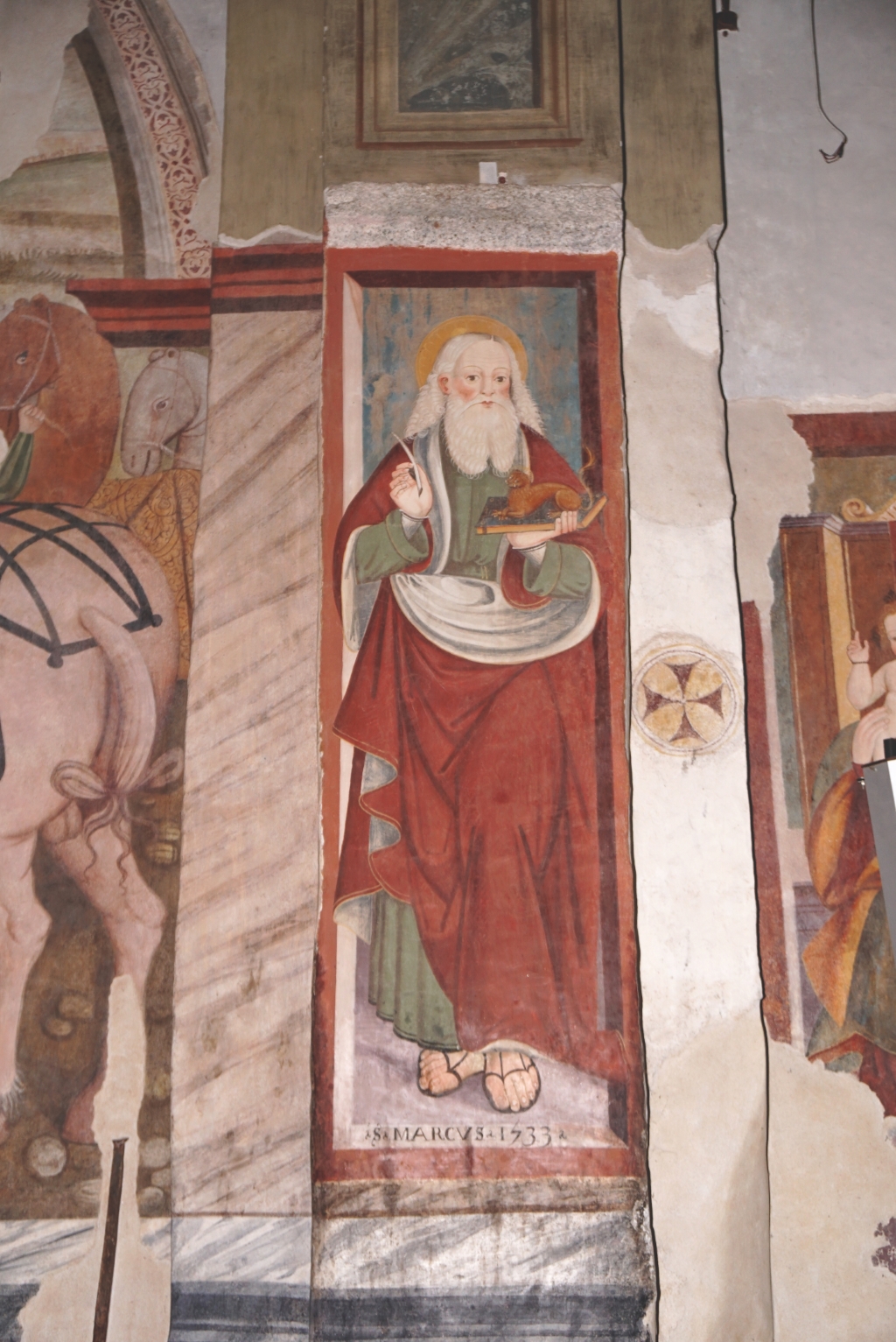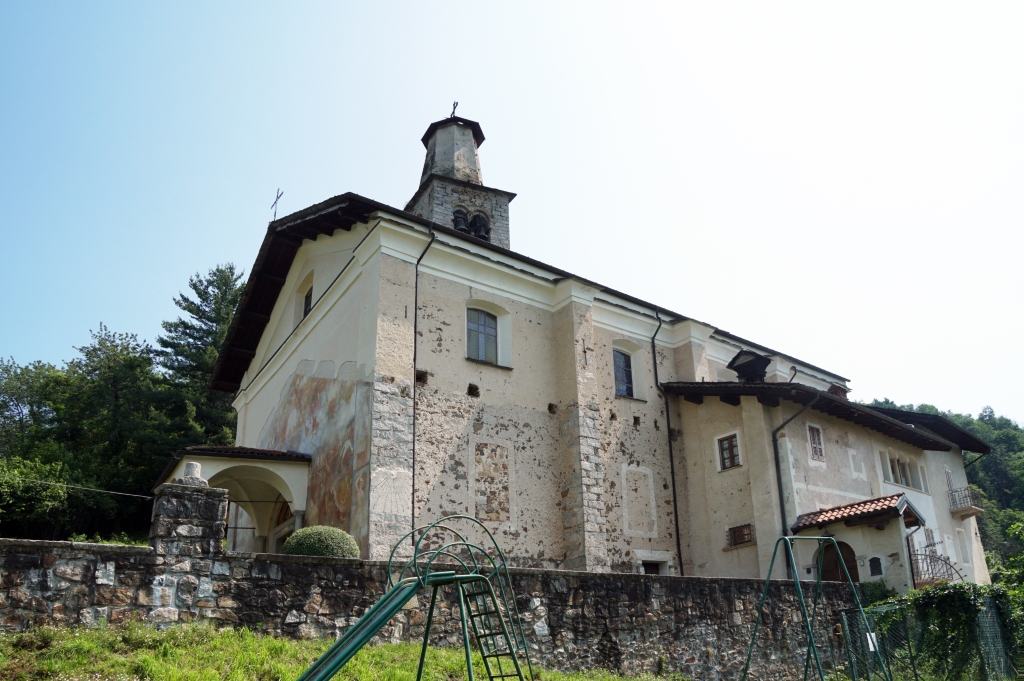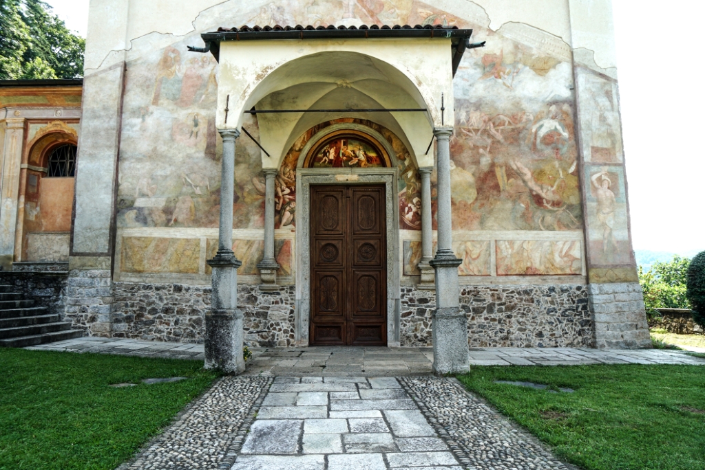 Esterno: in facciata affresco del Giudizio Universale di Giulio Cesare Luini (1512-dopo 1566) del 1566 e nella lunetta Nascita di Gesù dello stesso autore. |