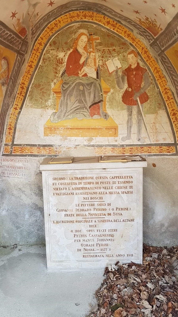 Notizie generali: Nella cappella della Peste sono conservati pregevoli affreschi, opera di Giovanni Oldrado Perini (Perino) della Novalesa |