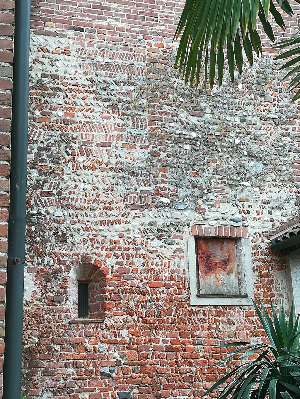 Interno: parte di muratura e una monofora della chiesa originaria. |