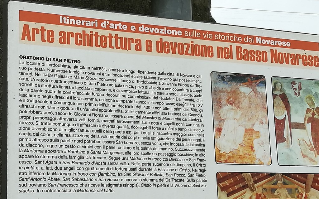 L'Oratorio si trova a Terdobbiate (NO), noto come San Pietro. Periodo prevalente: XV secolo. Livello di interesse: 1 (Interessante). Elementi presenti: pittura. Da vedere: interno.