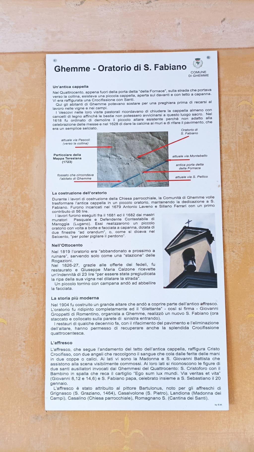 L'Oratorio si trova a Ghemme (NO), noto come San Fabiano. Periodo prevalente: XV secolo. Livello di interesse: 2 (Merita una deviazione). Elementi presenti: pittura. Da vedere: interno.
