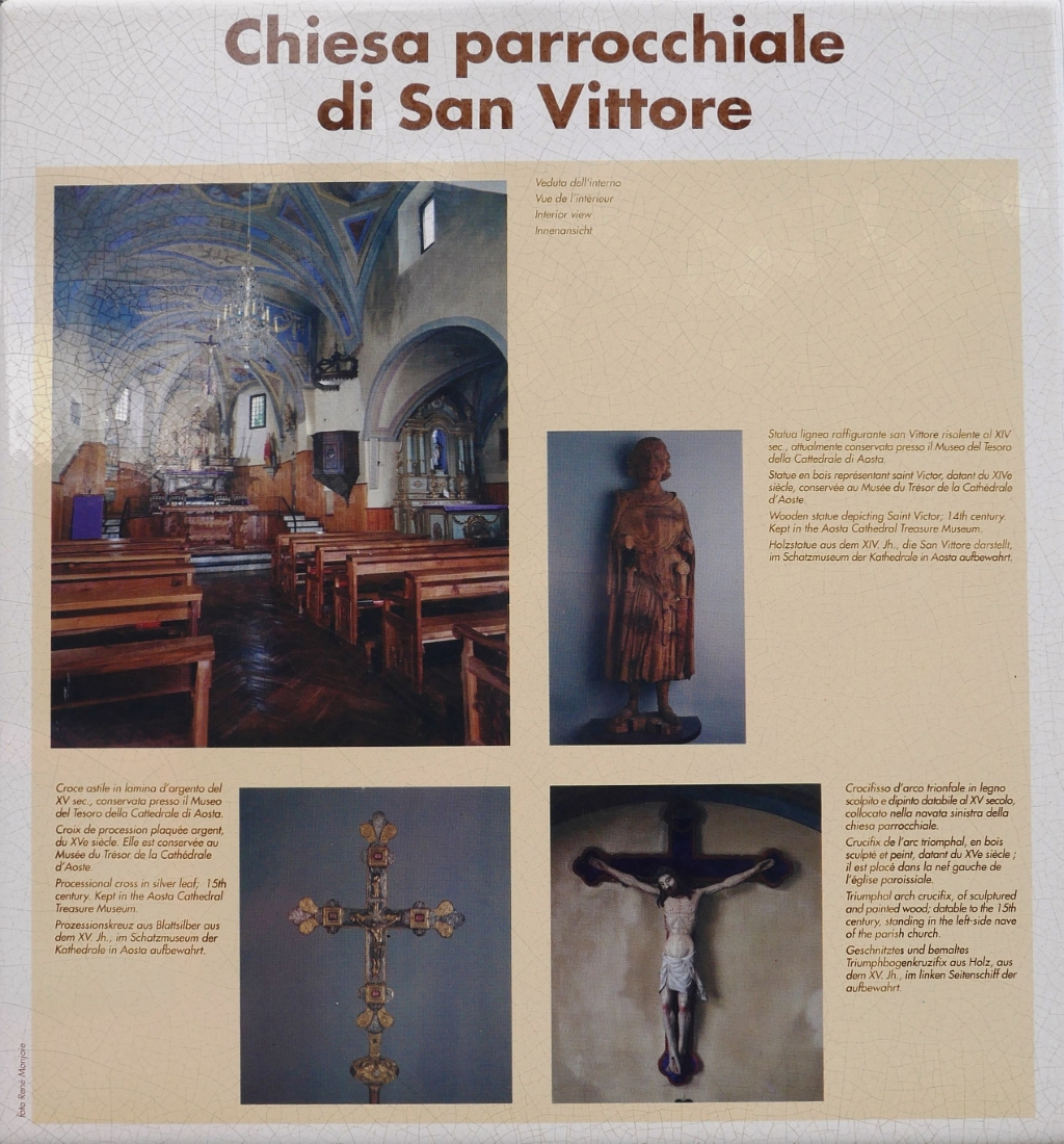 La Parrocchiale si trova a Roisan (AO), nota come San Vittore. Periodo prevalente: XIV secolo. Livello di interesse: 0 (Segnalata). Elementi presenti: pittura, campanile. Da vedere: interno, campanile.