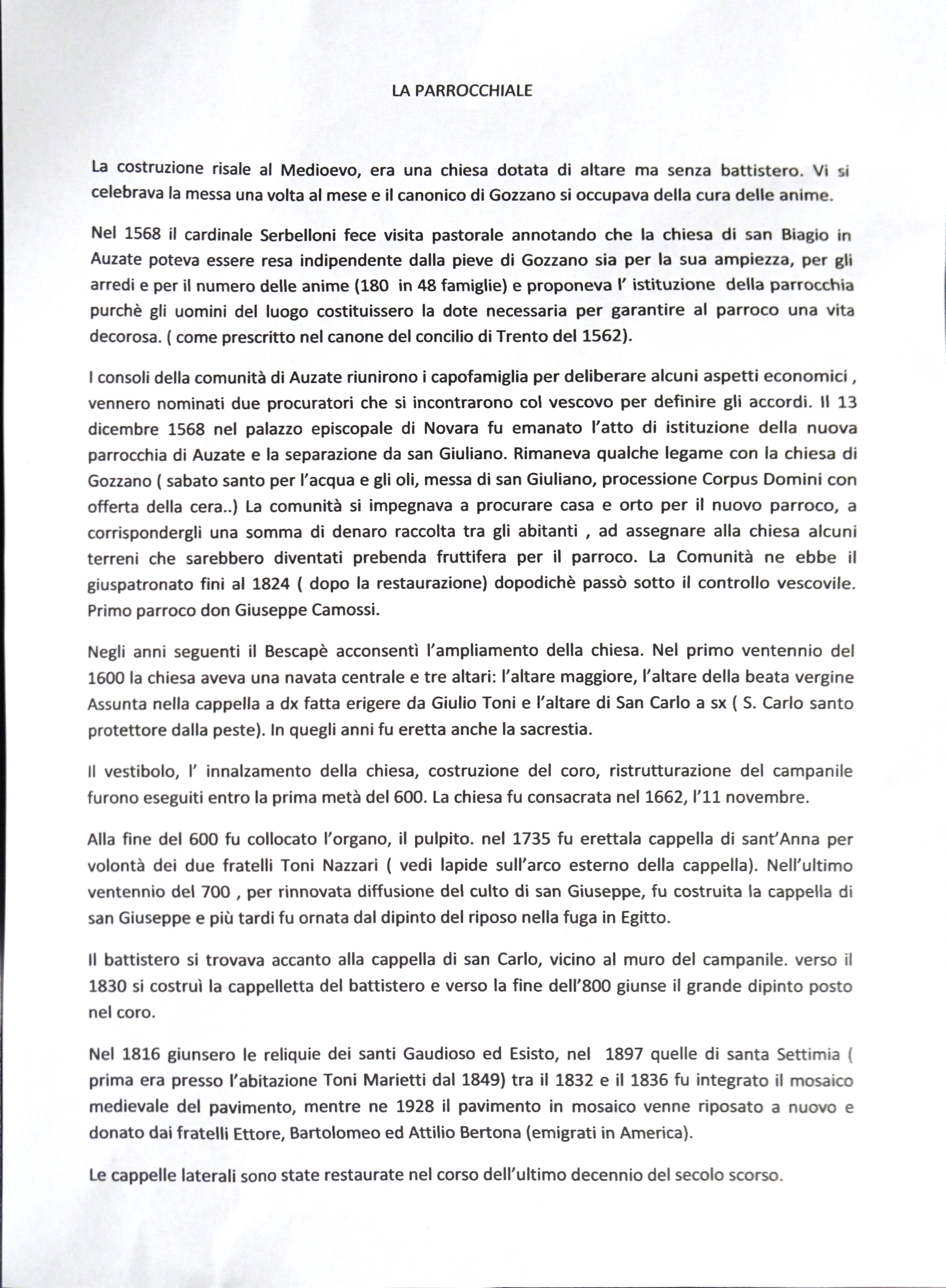 La Chiesa si trova a Auzate, Gozzano (NO), nota come San Biagio. Periodo prevalente: XVI secolo. Livello di interesse: 0 (Segnalata). Elementi presenti: . Da vedere: .