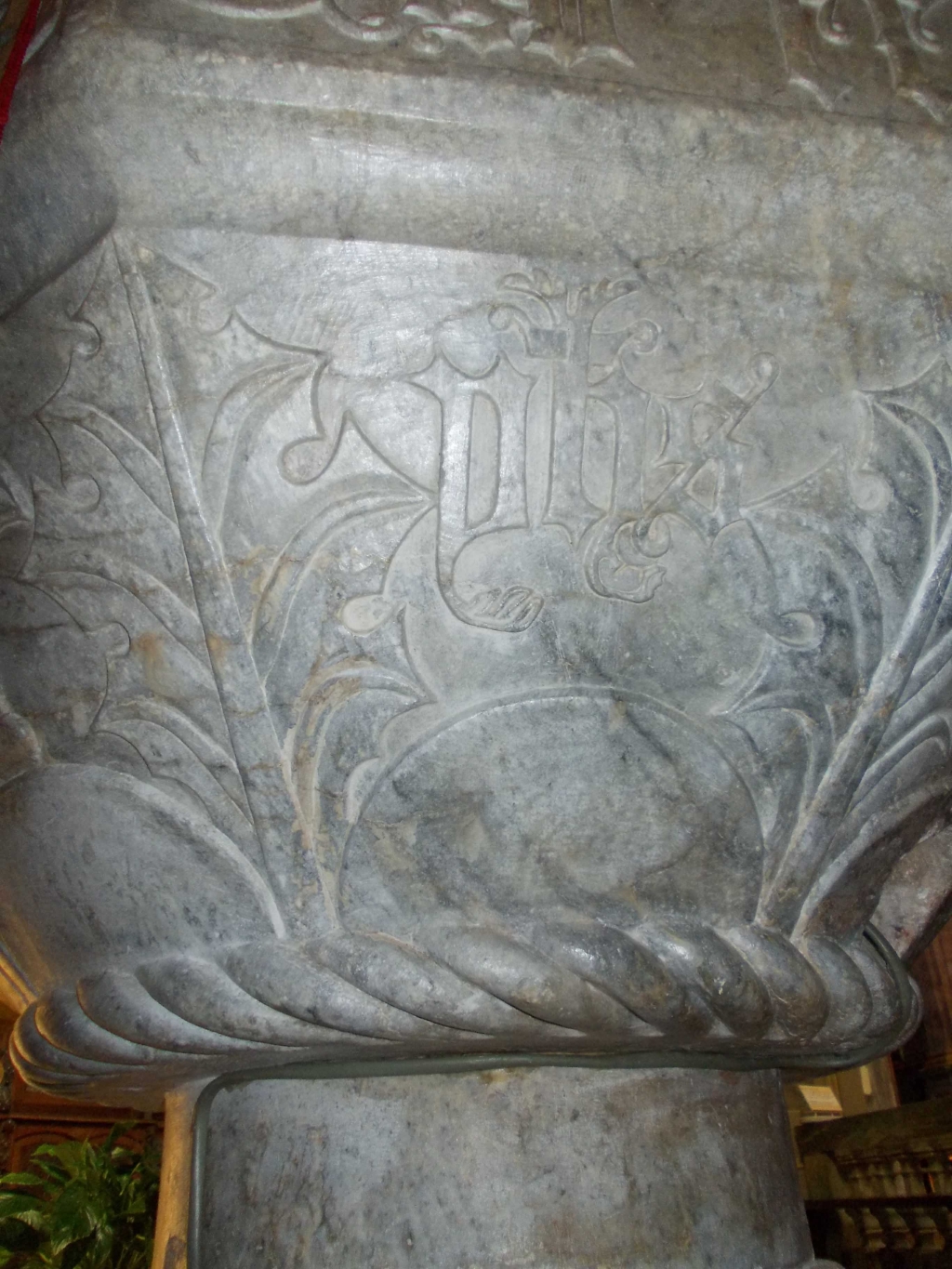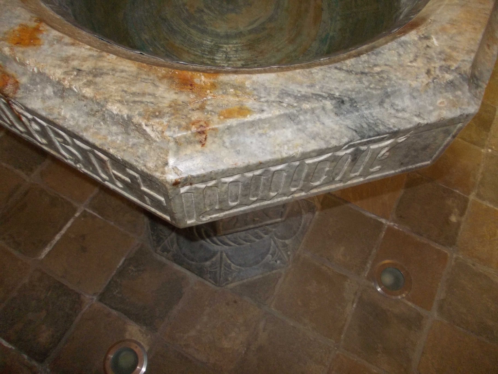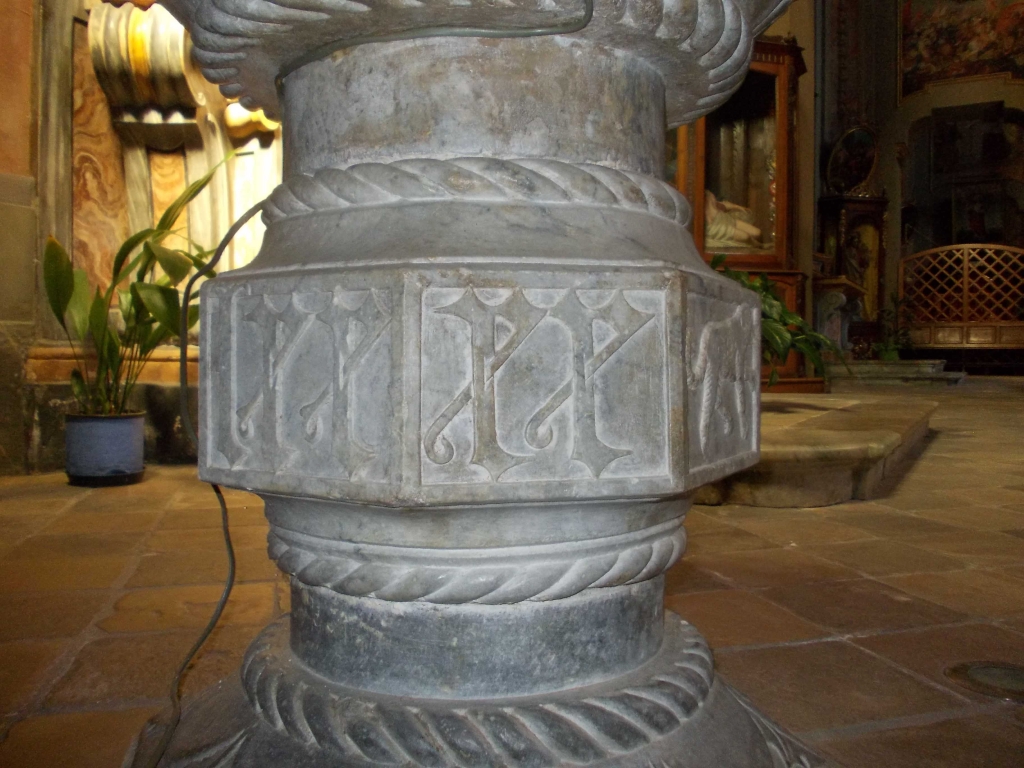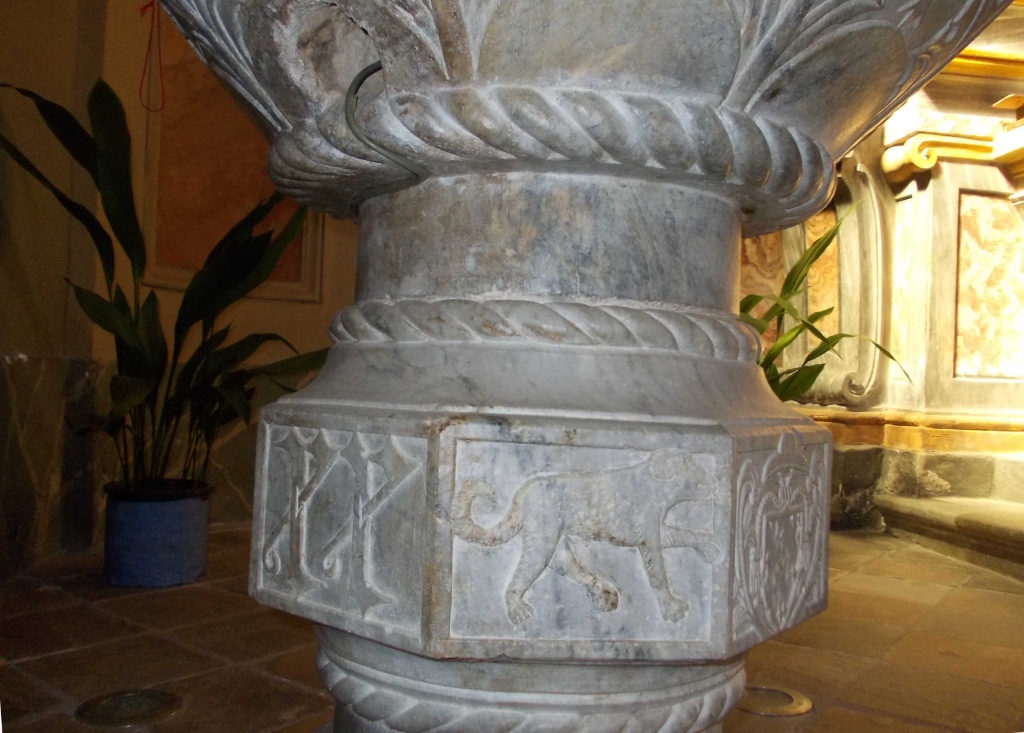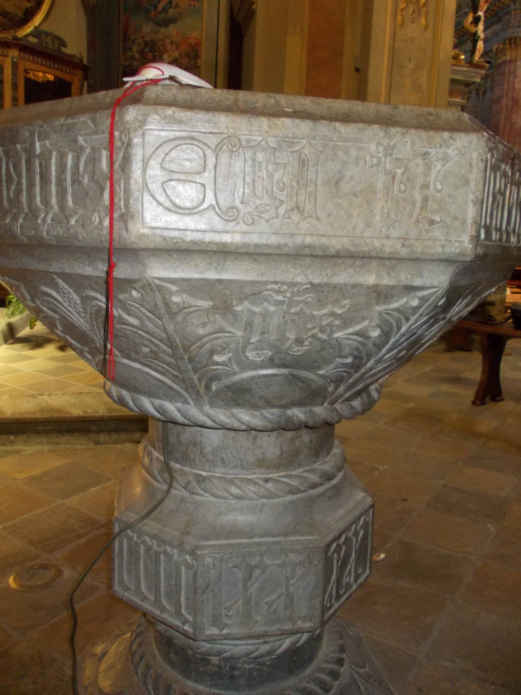 Interno: Fonte battesimale attribuito agli Zabreri. |