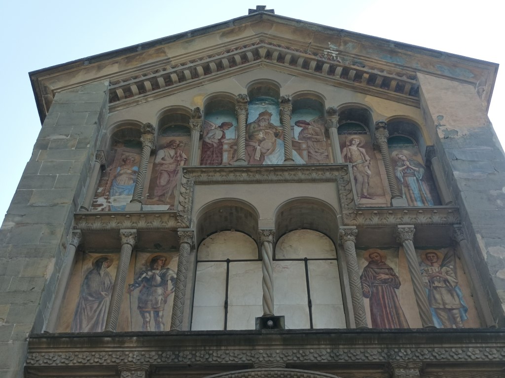 Esterno: abside centrale, originale, corsa da colonnine, con bifore, forse della seconda metà del XII secolo. absidiola sinistra del XI secolo. |