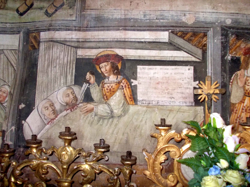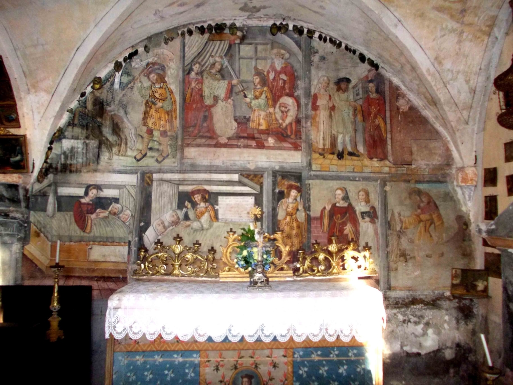 Esterno: affreschi di San Giuliano, Pietà e Annunciazione. |