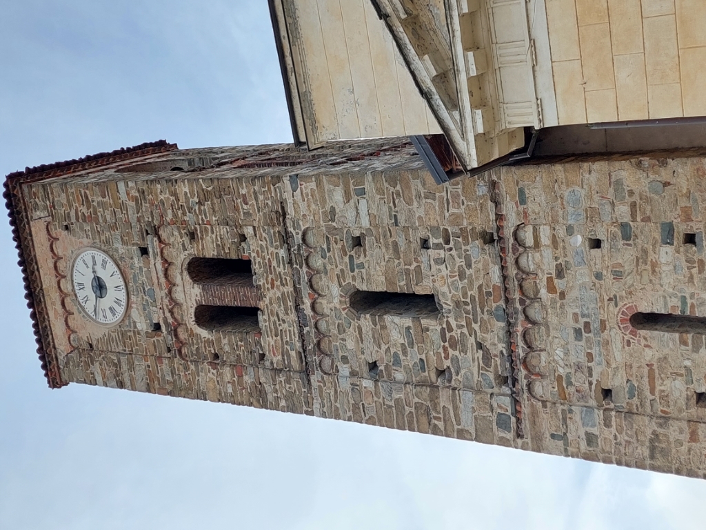 Campanile: romanico a sei piani. |