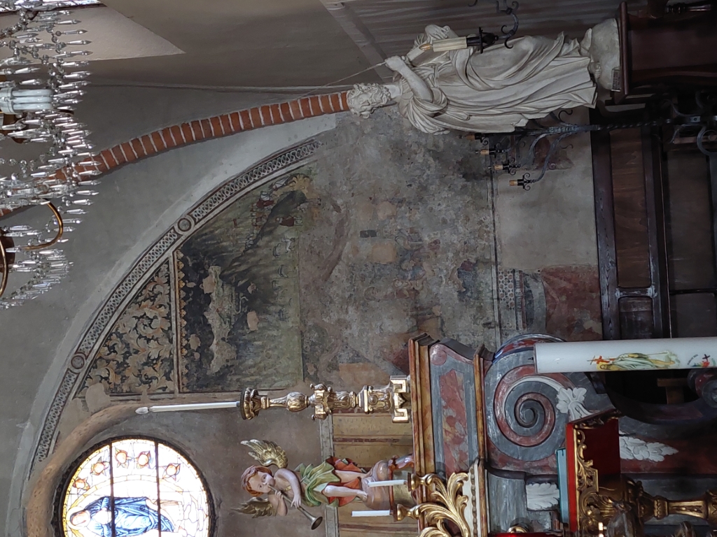 Interno: restaurato nel 1920 e nel 1977 conserva un fonte battesimale datato 1493 e nell'abside affreschi forse quattrocenteschi (secondo TCI duecenteschi) raffiguranti la Natività, il Corteo dei Magi e il miracolo del Seminatore dei Bethleem. |