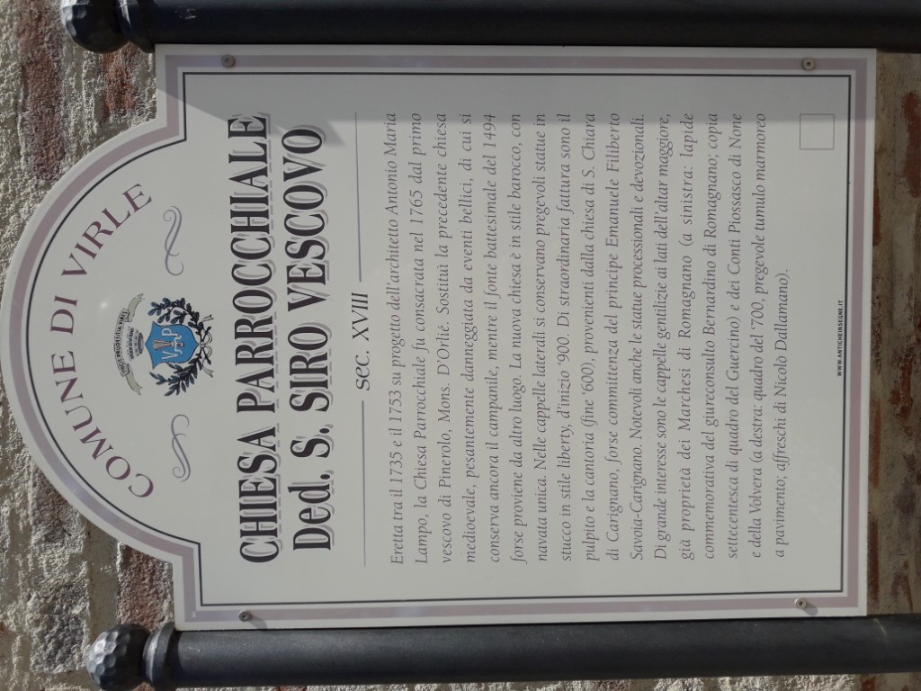 La Parrocchiale si trova a Virle Piemonte (TO), nota come San Siro. Periodo prevalente: XIV secolo. Livello di interesse: 1 (Interessante). Elementi presenti: scultura, campanile. Da vedere: interno, campanile.