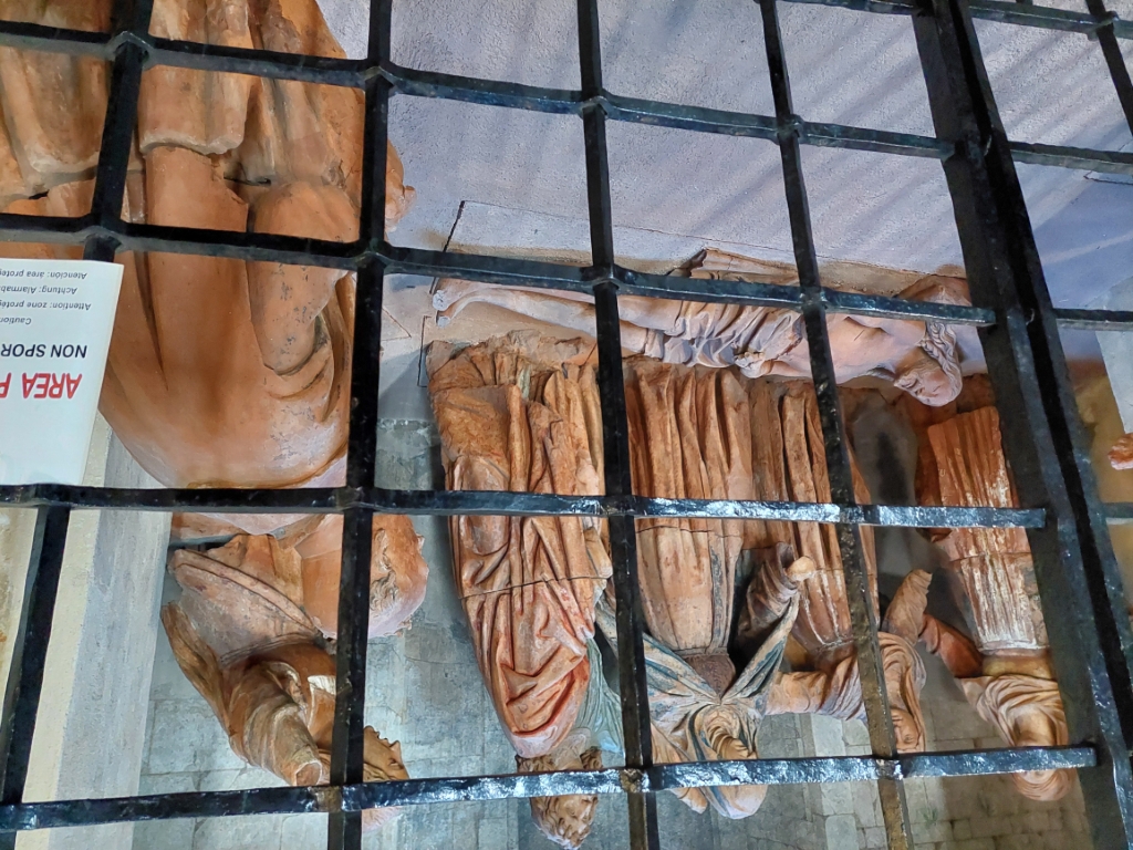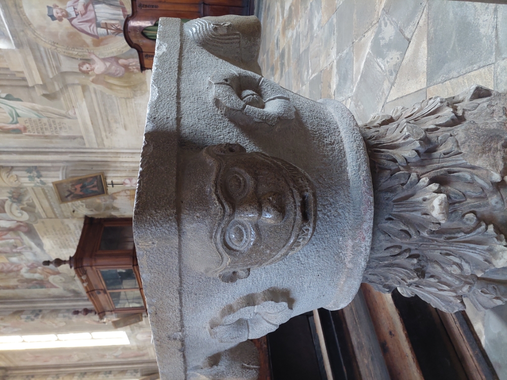 Cripta: Dietro all'altare della navata sinistra una porta da accesso alla Cripta dei Vescovi che si stende sotto l'abside maggiore e conserva i sepolcri di alcuni vescovi e reperti archeologici di vario genere |