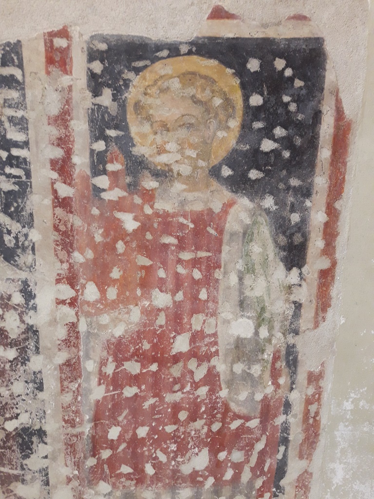 Campanile: romanico, residuo della chiesa abbattuta nel '200, del X-XI secolo, fu abbassato alla fine del '600-inizio '700. Presenta nella parte inferiore fasce marcapiano decorate con archetti pensili e monofore con archi bicromi. |