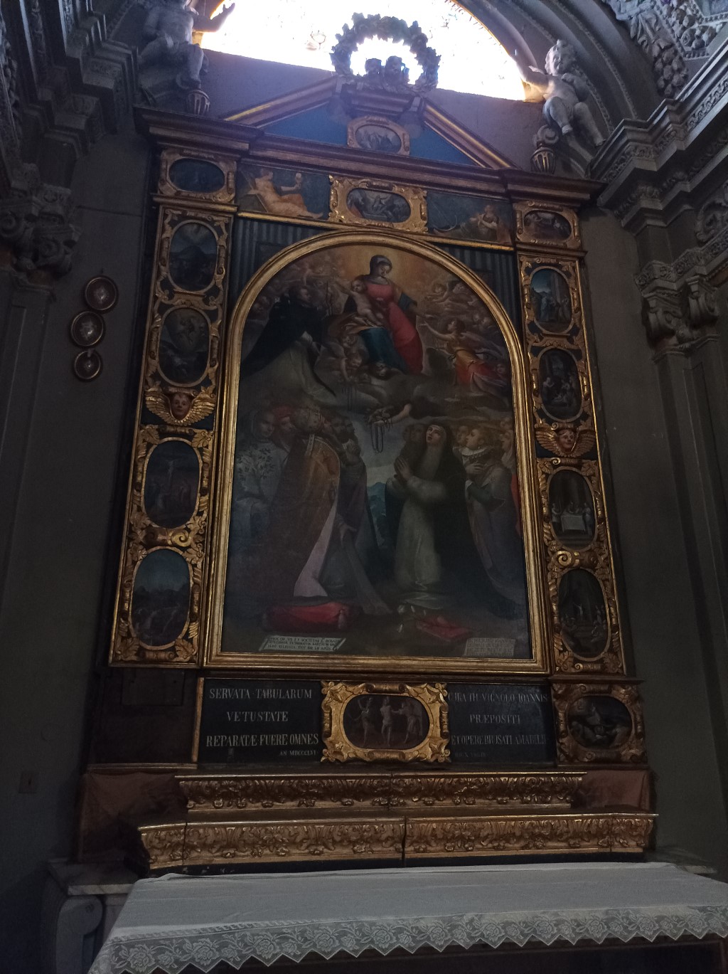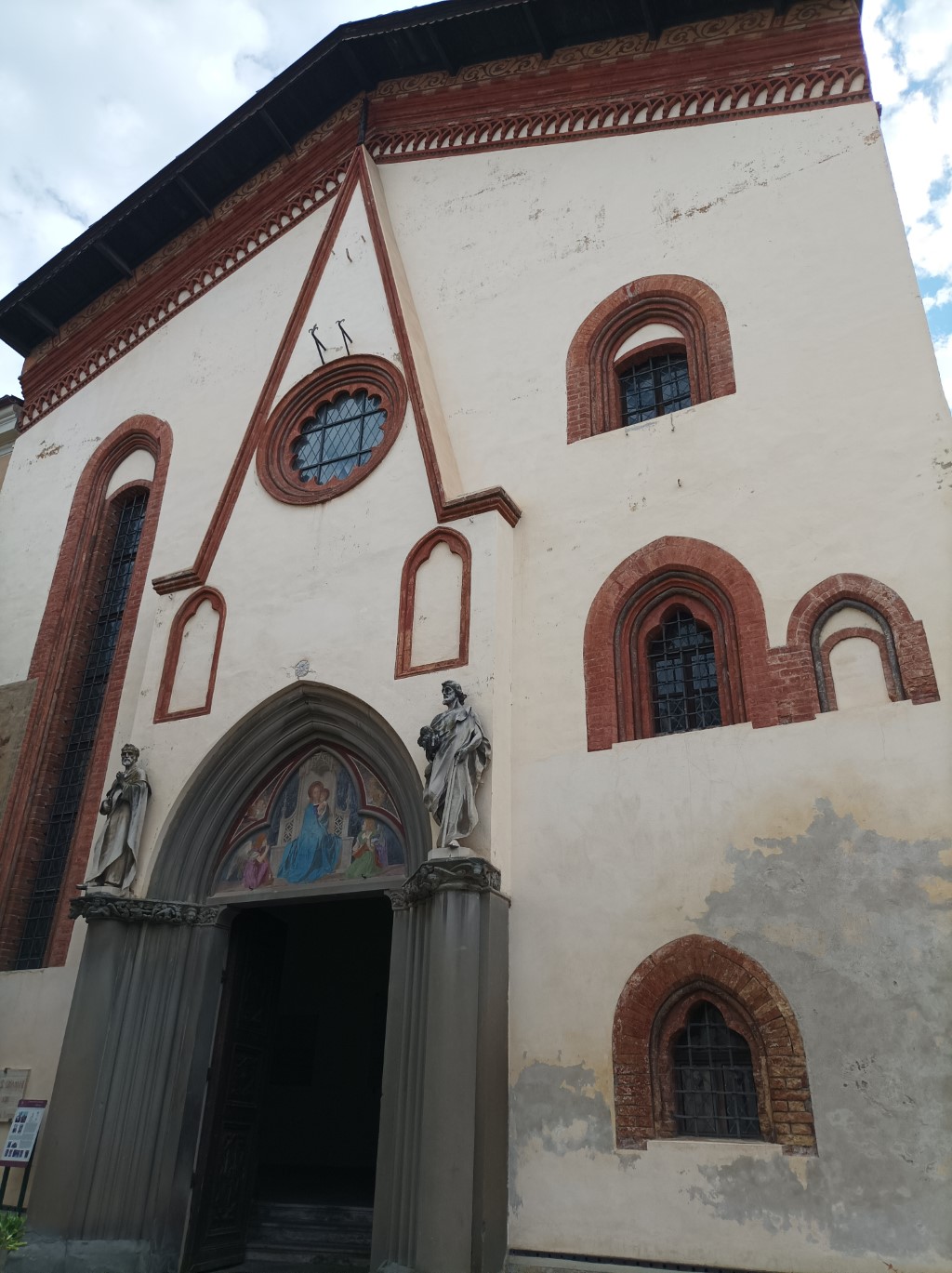 Notizie generali: fondata nel 1284 e terminata nel 1320, restaurata nel 1895 e nel 1952. Già a pianta a croce latina, ora ad un unica navata dopo i rimaneggiamenti barocchi. Tra il 4° e il 5° altare a sinistra, pulpito ligneo del 1594. |