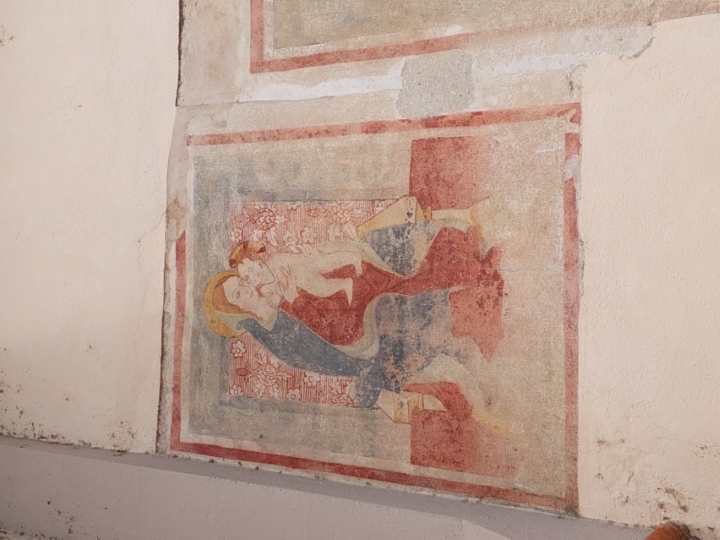 Esterno: affreschi del '400 e '500: sul fianco destro Madonna col Bambino, San Cristoforo, San Defendente e un altro Santo. |