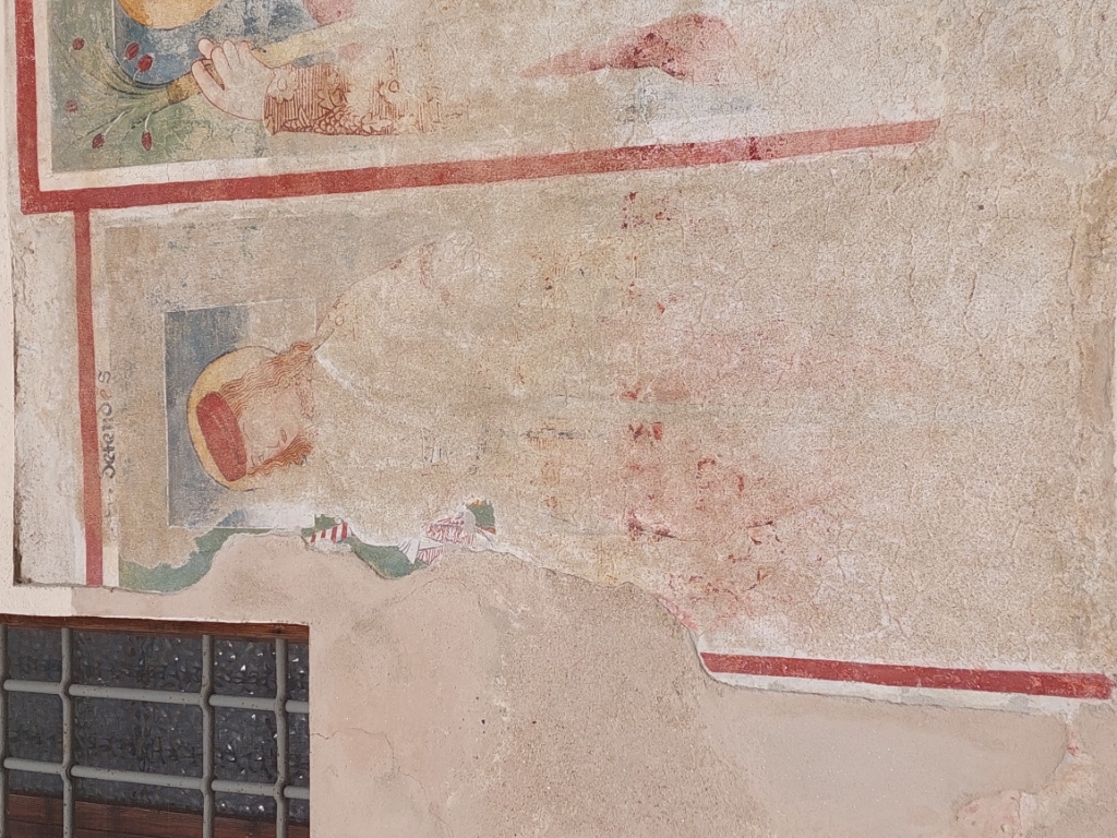 Interno: in una cappella a destra Gesù, le Pie Donne e Apostoli, tavola attribuita a Girolamo Giovenone (circa1490-1555). Sul muro della terza campata sinistra affresco del '500. |