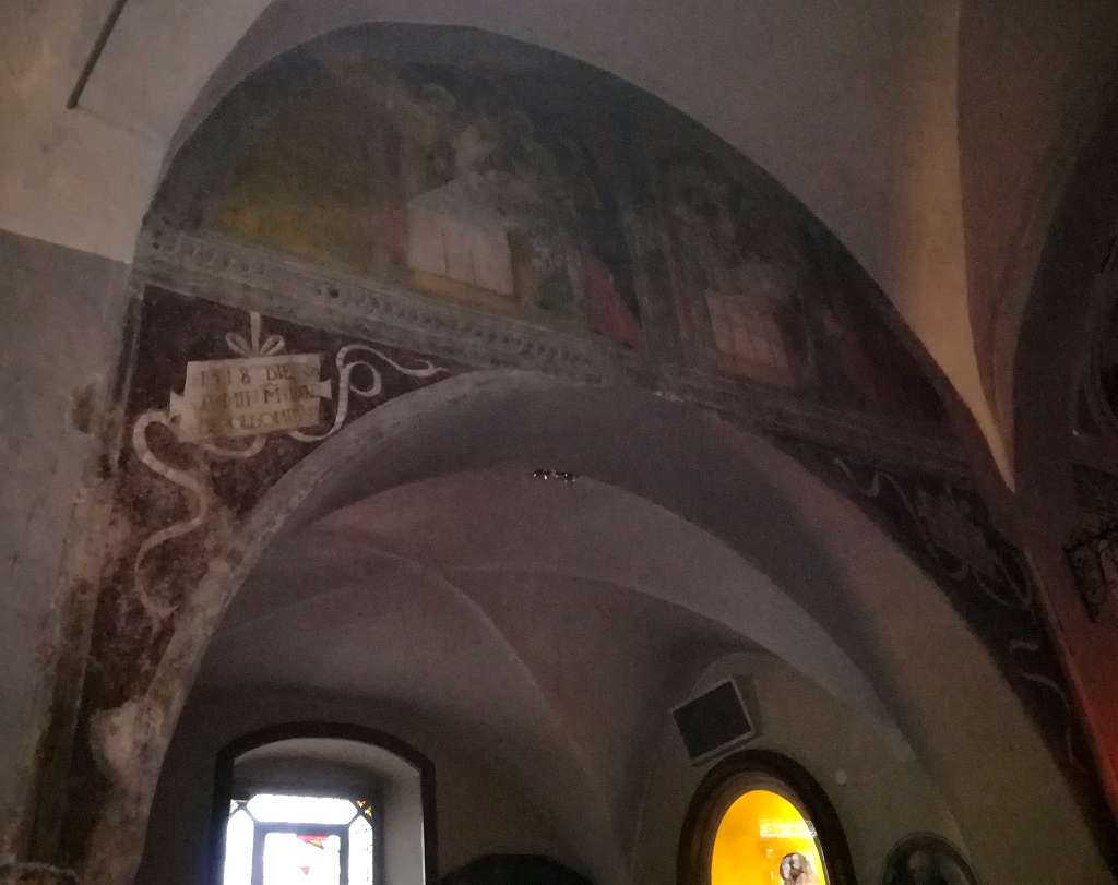 Interno: affreschi probabilmente del 1503 raffiguranti la Vergine in Trono con San Sebastiano sono nella navata destra all'altare dei Santi Fabiano e Sebastiano. Nell'ultima lunetta a sinistra della navata centrale Presentazione al Tempio di Giosuè Oldoni (circa 1463-dopo 1522). Ai lati dell'altare della Madonna nella navata sinistra San Lorenzo e San Domenico di pittore della scuola vercellese. A fianco vetrata del '500 istoriata raffigurante un Re che adora e porge doni a Gesù e in basso lo stemma della famiglia Vialardi. |