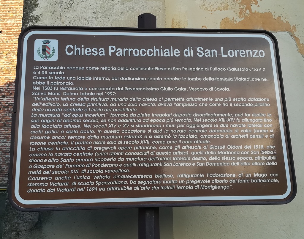 La Parrocchiale si trova a Verrone (BI), nota come San Lorenzo. Periodo prevalente: XVI secolo. Livello di interesse: 2 (Merita una deviazione). Elementi presenti: pittura. Da vedere: esterno, interno.