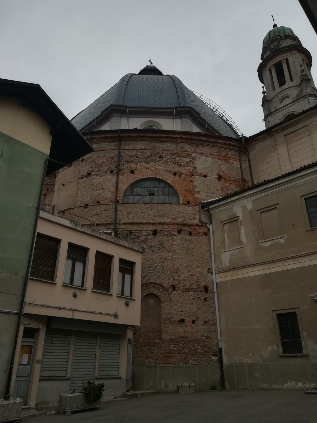 Notizie generali: l'originale edificio romanico fu abbattuto verso il 1470 per costruire una chiesa tardogotica a quattro navate che fu abbattuta nel 1881 per fare posto all'attuale chiesa neoclassica dalla originale cupola in laterizio armato. |