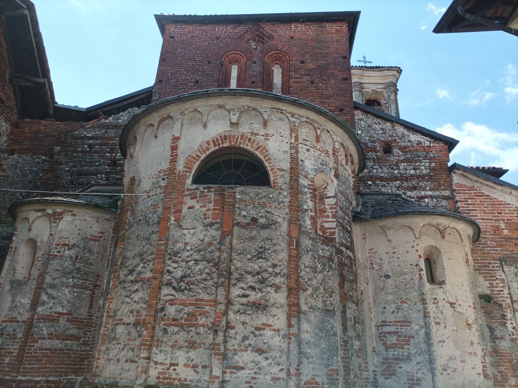 Notizie generali: caratterizzata dagli elementi propri dell'architettura romanica novarese e lombarda. L'interno fu profondamente trasformato nel '600 e '700 quando, nel 1668, fu costruita la cappella dedicata a Sant'Antonio da Padova, per volere dell'abate commendatario Alfonso Litta di Milano; nella navata settentrionale furono aggiunti stucchi seicenteschi e dipinti di Francesco Bellotti ( ) di Busto Arsizio, attivo a Dulzago negli anni 1670-80. Negli anni 1735 e 1736 venne reso unitario l'interno mediante una decorazione caratterizzata da gigantesche cornice modanate sui toni dei colori ocra e grigio eseguite dal pittore quadraturista novarese Carlo Morino (attivo almeno dal 1726 al 1751), con lo stemma dell'abate commendatario Antonio del Pozzo. Nel secondo ventennio del '700 venne realizzata nella navata meridionale la cappella del Santo Rosario riccamente decorata con stucchi e dipinti. Nei pressi della chiesa si conserva la sala capitolare del XIV secolo con affreschi dei secoli XIV, XV e XVI. |