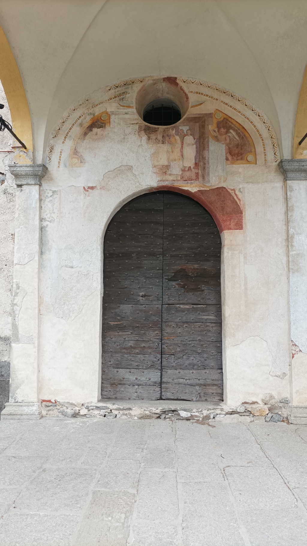Esterno: affreschi del XVI secolo sulla facciata, tra cui San Cristoforo. |