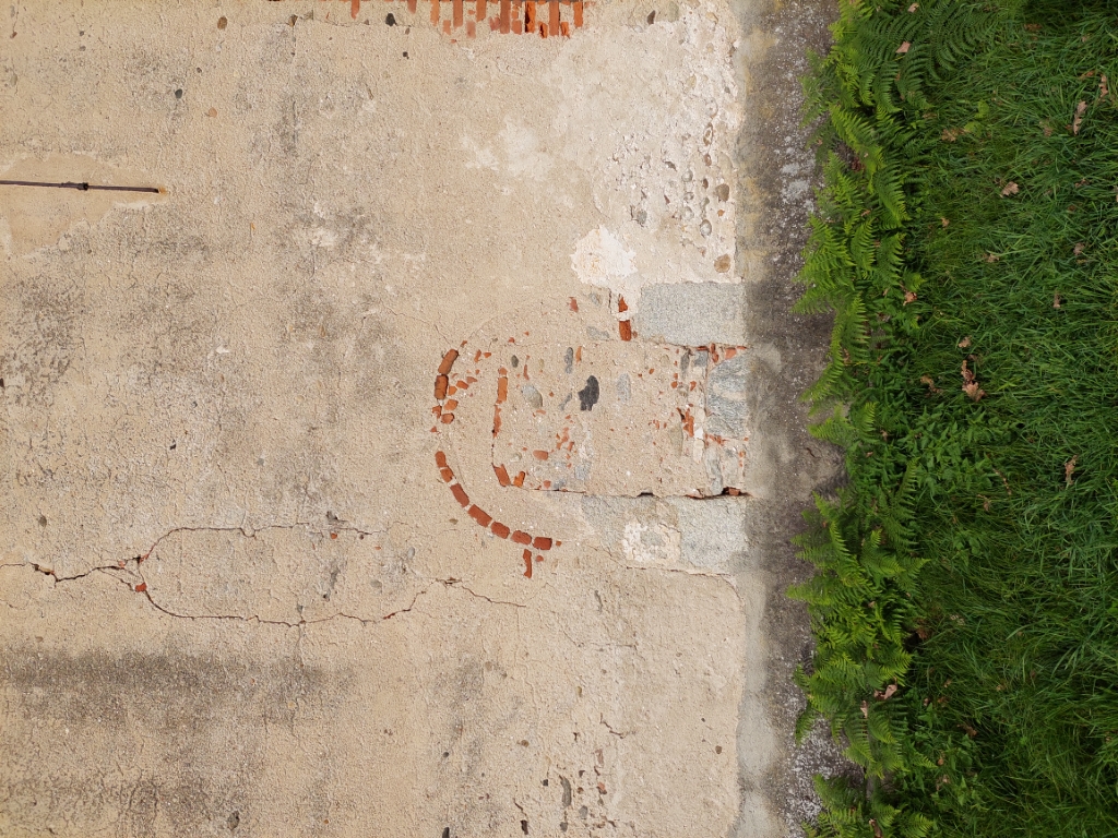 Esterno: si presenta a ciottoli disposti a spina di pesce e blocchi squadrati di pietra. Un motivo a risega orna la parte alta dell'abside. |