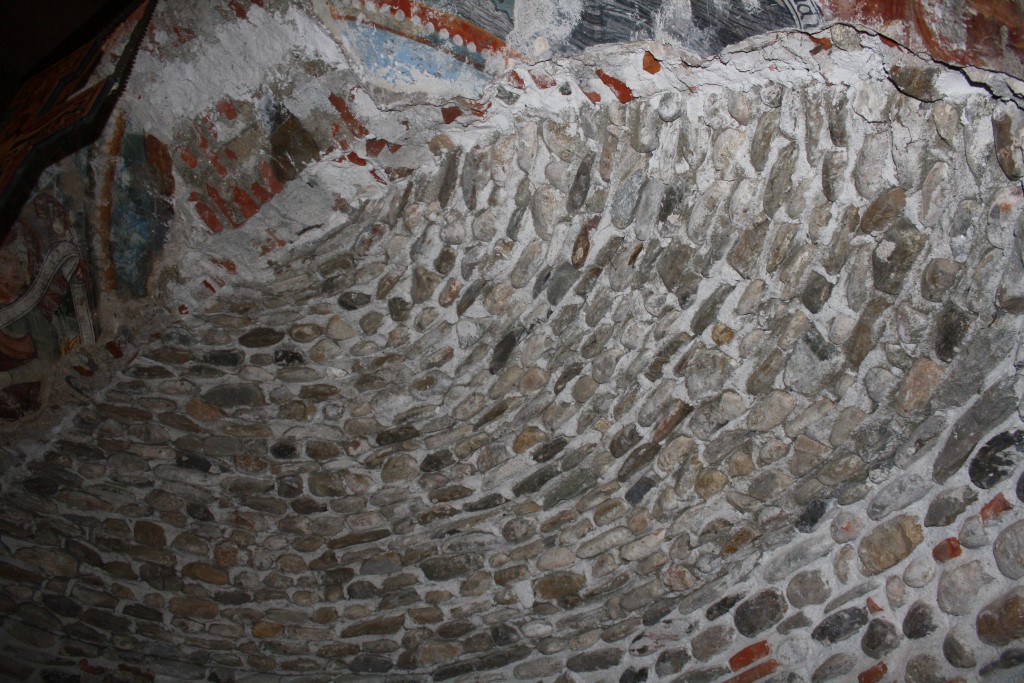 Esterno: bifora sulla facciata a capanna e finestrella strombata sul lato meridionale; qualche tratto di muro composto di ciottoli disposti a lisca di pesce |