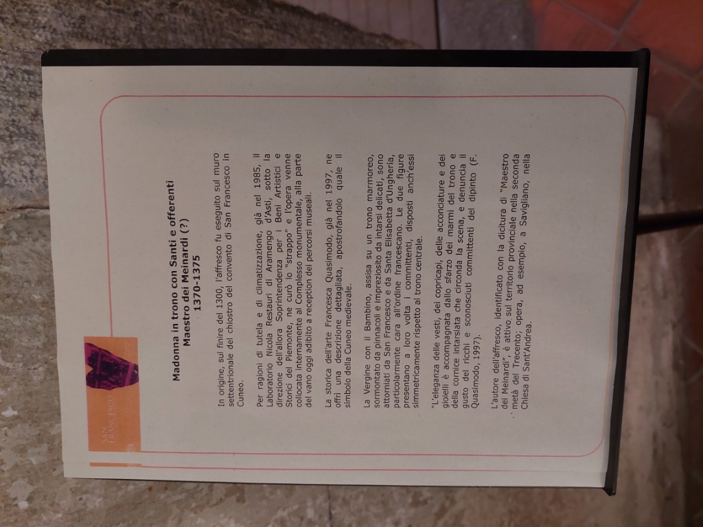 ♦ https://it.wikipedia.org/wiki/Complesso_monumentale_di_San_Francesco - Verificato il 11/03/2024 ♦ https://www.comune.cuneo.it/cultura/museo-civico-di-cuneo/complesso-monumentale.html - Verificato il 11/03/2024 ♦ https://www.museodiffusocuneese.it/siti/dettaglio/article/cuneo-museo-civico/ - Verificato il 11/03/2024 ♦ https://archeocarta.org/cuneo-chiesa-di-san-francesco/ - Verificato il 11/03/2024 ♦ https://www.provincia.cuneo.it/_allegati/pianificazione-territoriale/47279/altriallegati/quaderno49d-72959946.pdf - Verificato il 04/01/2025 |