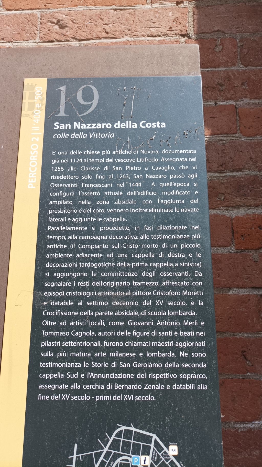 La Chiesa si trova a Novara (NO), nota come San Nazzaro della Costa. Periodo prevalente: XIV secolo. Livello di interesse: 1 (Interessante). Elementi presenti: pittura. Da vedere: interno.