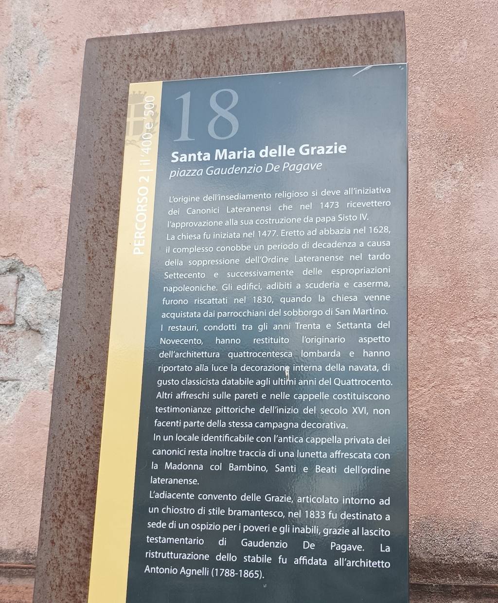 Notizie generali: costruita nel 1473 dai canonici lateranensi, già Santa Maria delle Grazie, in forme lombardo ogivali preludenti al rinascimento, divenne caserma nell''800. È stata accuratamente restaurata negli anni1969-71 |
