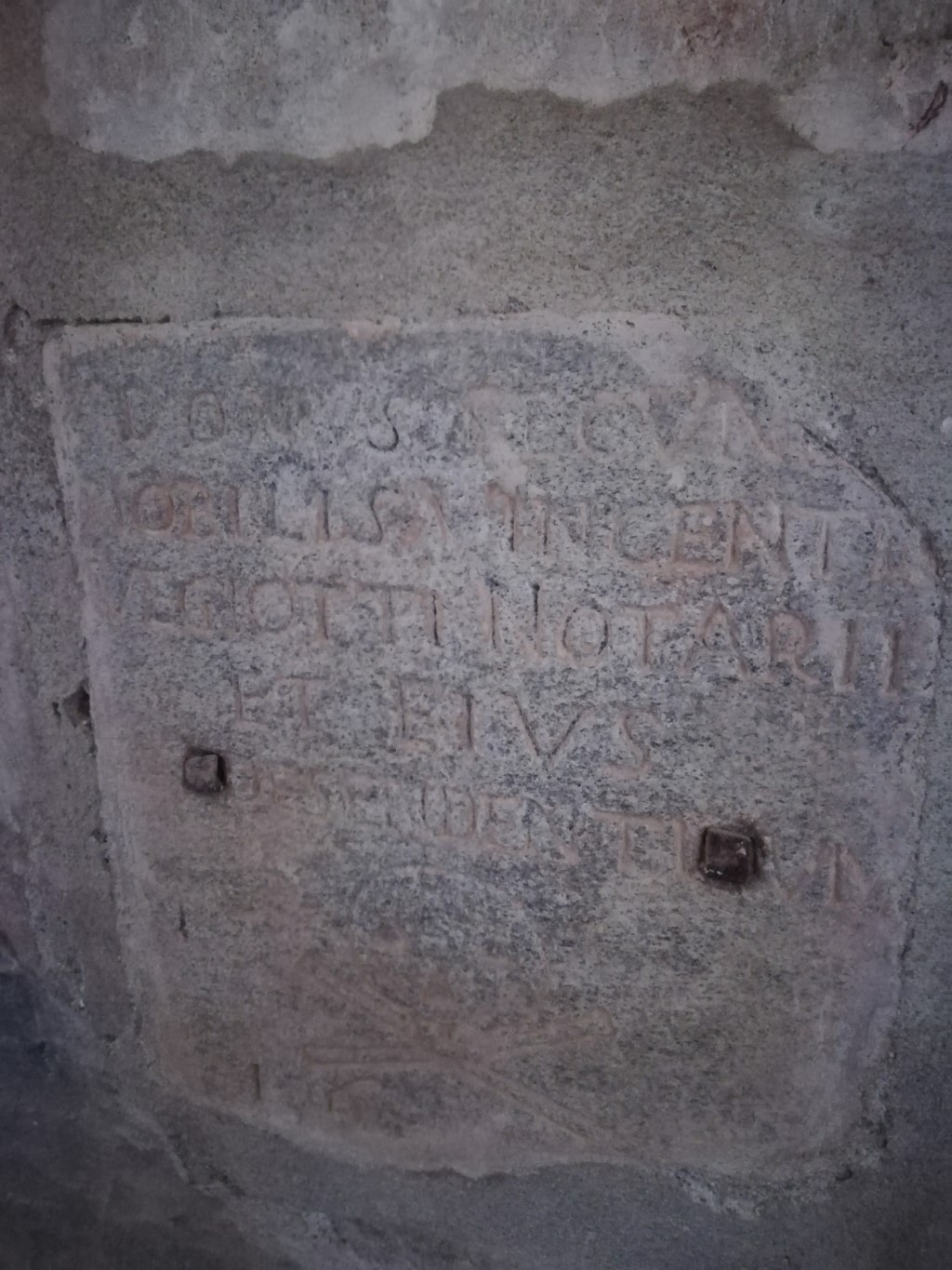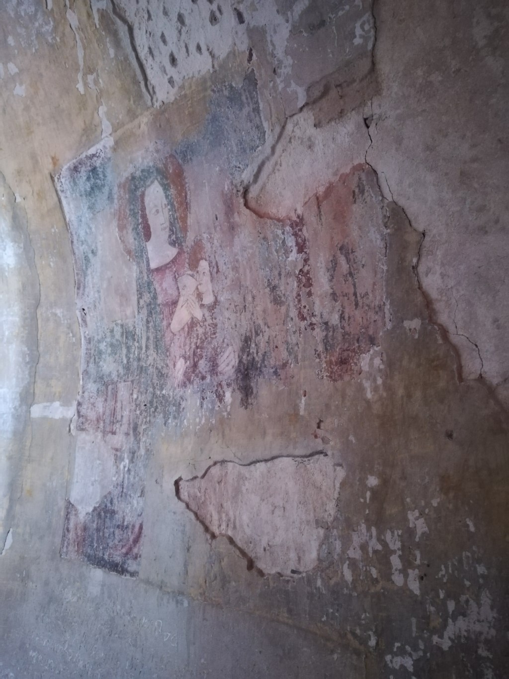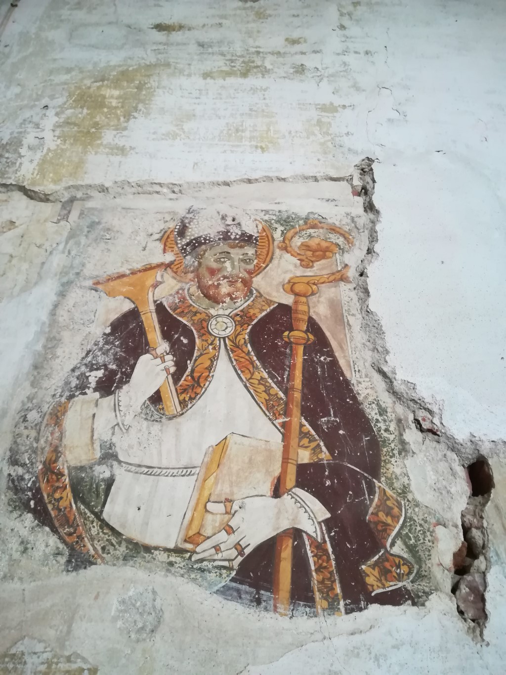 Esterno: abside romanica, semicircolare ornata di archetti pensili e arcate cieche sui fianchi. Sul fianco sud affreschi del '400 quasi invisibili. |