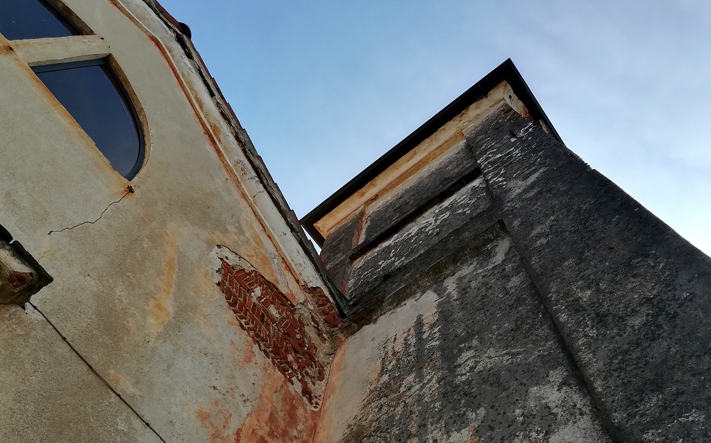 Esterno: facciata a capanna e abside semicircolare molto rimaneggiate |