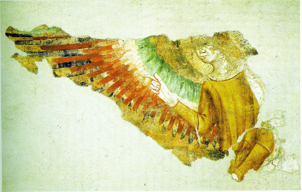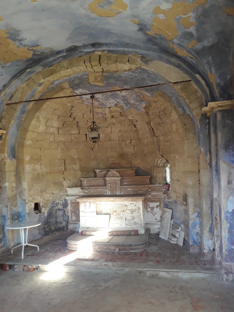 Interno: Erano presenti resti di un frammento di affresco, ora staccate per preservarlo, dell'Arcangelo Gabriele. |