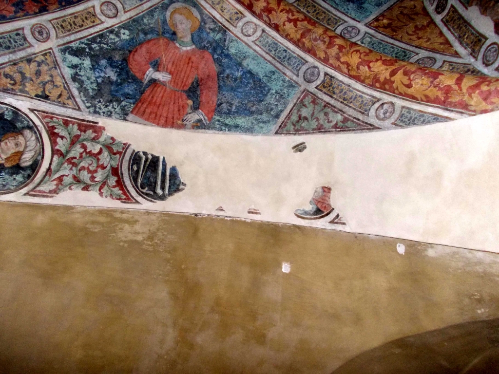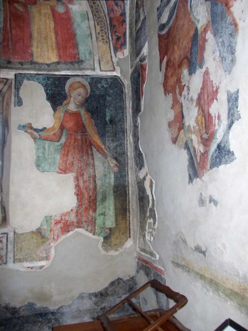 All'interno, in fondo alla navata destra, lastra di un sarcofago quattrocentesco smembrato, murata, con a fianco l'iscrizione datata 1474, che ci informa essere la tomba del pievano Michele de Suavis. |