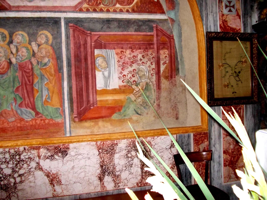 Interno: affreschi di inizio '400 con storie della Madonna, resti di un ciclo molto più esteso. |