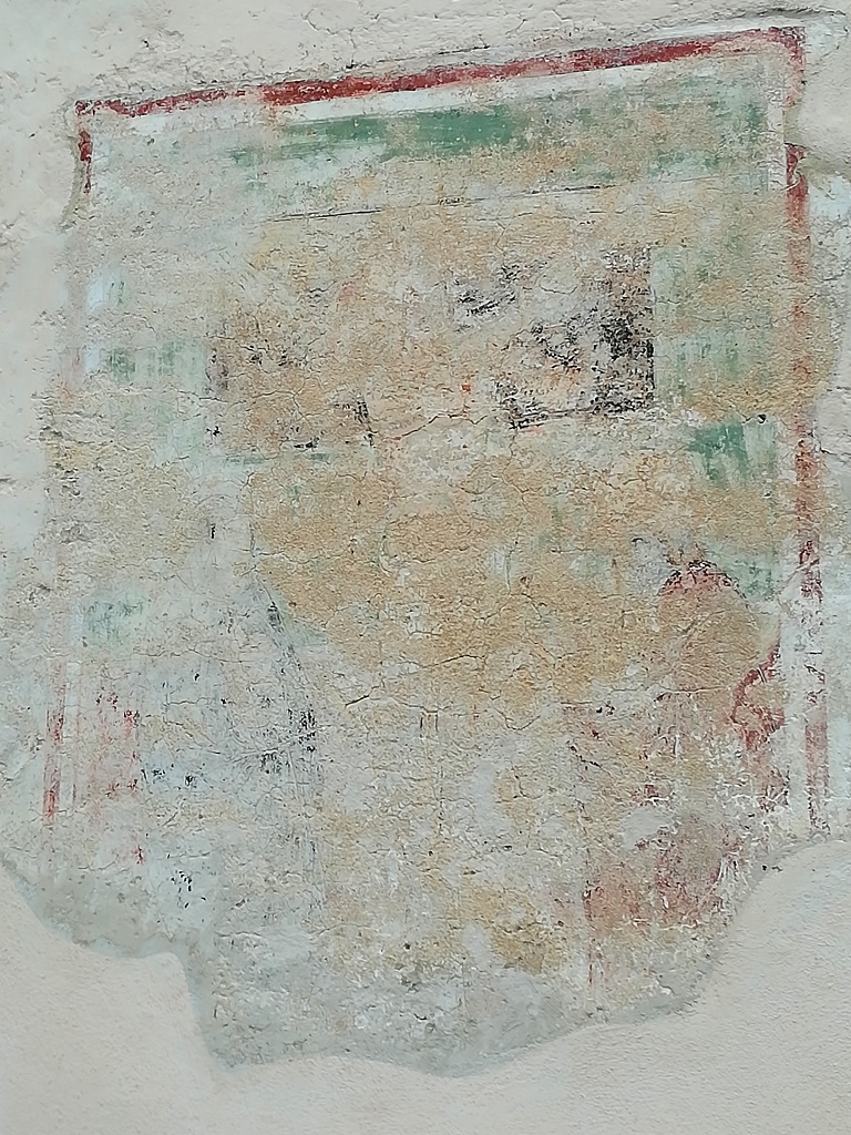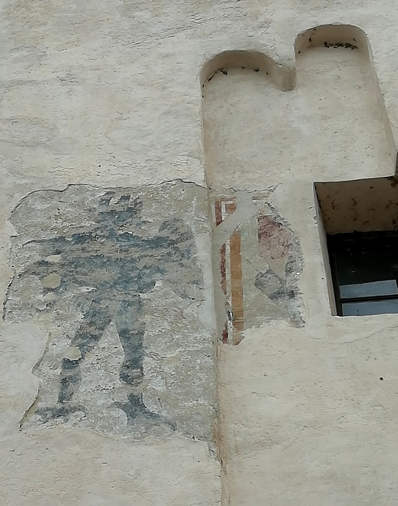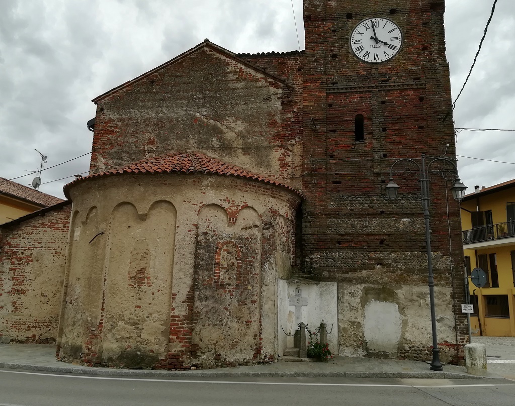 Esterno: abside in mattoni con monofore tamponate. In facciata tracce di affreschi tra cui un San Cristoforo. |