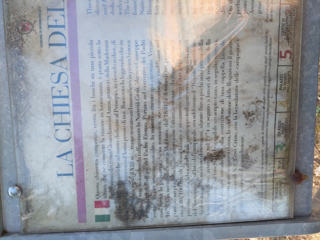 Notizie generali: in origine romanica, ricostruita prima del 1600 in seguito al ritrovamento in ziona di un bassorilievo di scuola veneto-lombarda (XII-XIV secolo) raffigurante il presepio; restaurata nel 1974. |