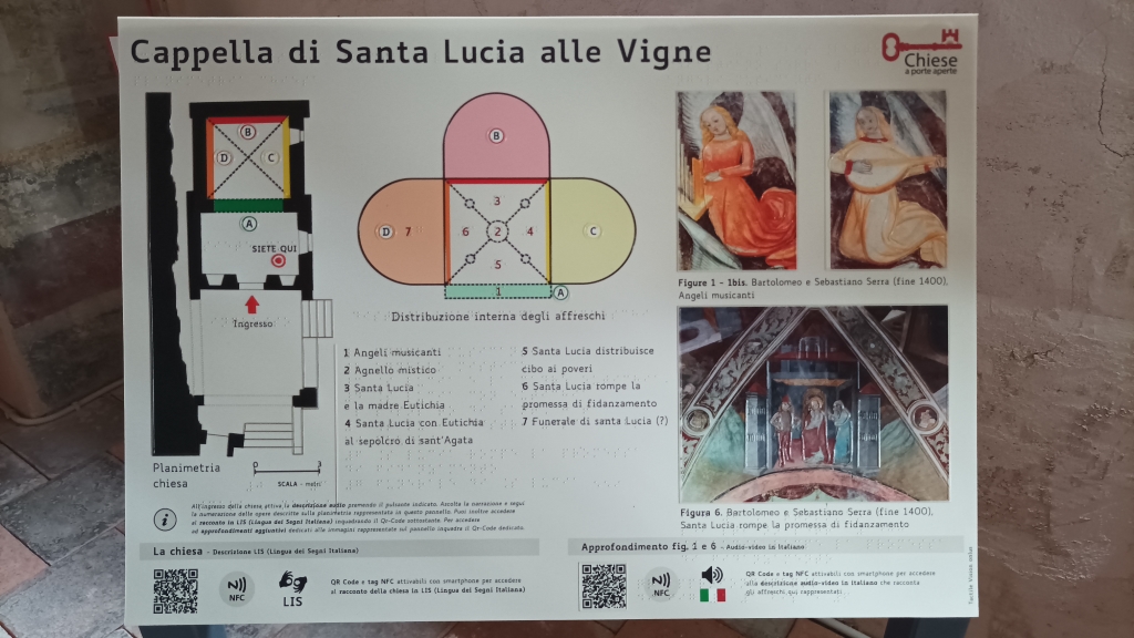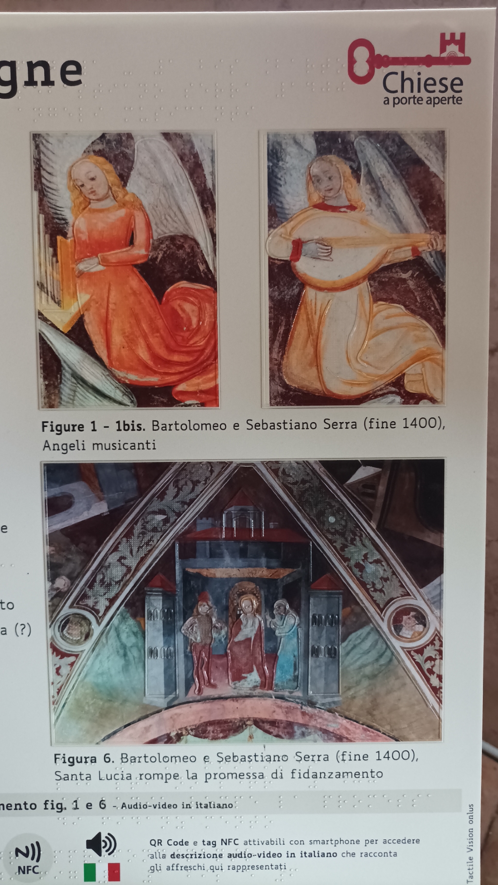 Referenze fotografiche: scopri chi ha scattato le foto della chiesa • Vista - Marco Actis Grosso - 2021 • Affresco sotto al portico - Marco Actis Grosso - 2021 • Affresco esterno abside - Marco Actis Grosso - 2021 • Vista absidale - Marco Actis Grosso - 2021 • Angeli musicanti nel sottarco - Giulio Pedrana - 2022 • Angeli musicanti - Giulio Pedrana - 2022 • Angeli musicanti - Giulio Pedrana - 2022 • Angeli musicanti - Giulio Pedrana - 2022 • Angeli musicanti - Giulio Pedrana - 2022 • Angeli musicanti - Giulio Pedrana - 2022 • Angeli musicanti - Giulio Pedrana - 2022 • Angeli musicanti - Giulio Pedrana - 2022 • Angeli musicanti - Giulio Pedrana - 2022 • Angeli musicanti - Giulio Pedrana - 2022 • Vita di Santa Lucia - Giulio Pedrana - 2022 • Vita di Santa Lucia - Giulio Pedrana - 2022 • Santa Lucia con Eutichia - Giulio Pedrana - 2022 • Vita di Santa Lucia - Giulio Pedrana - 2022 • Santa Lucia rompe la promessa di fidanzamento - Giulio Pedrana - 2022 • Santa Lucia rompe la promessa di fidanzamento - Giulio Pedrana - 2022 • Pannello illustrativo - Giulio Pedrana - 2022 • Pannello illustrativo - Giulio Pedrana - 2022 |