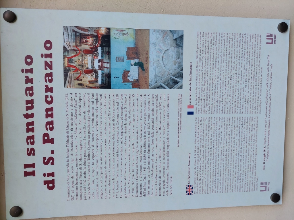 ♦ https://www.comune.vaie.to.it/it-it/vivere-il-comune/cosa-vedere/santuario-di-san-pancrazio-1768-1-38b1461470458aaf7be4652d6583b808 - Verificato il 25/07/2021 ♦ https://www.lagendanews.com/il-santuario-di-san-pancrazio-a-vaie/ - Verificato il 25/07/2021 |