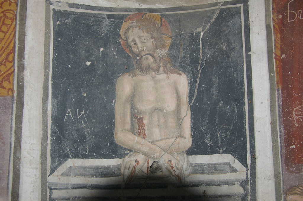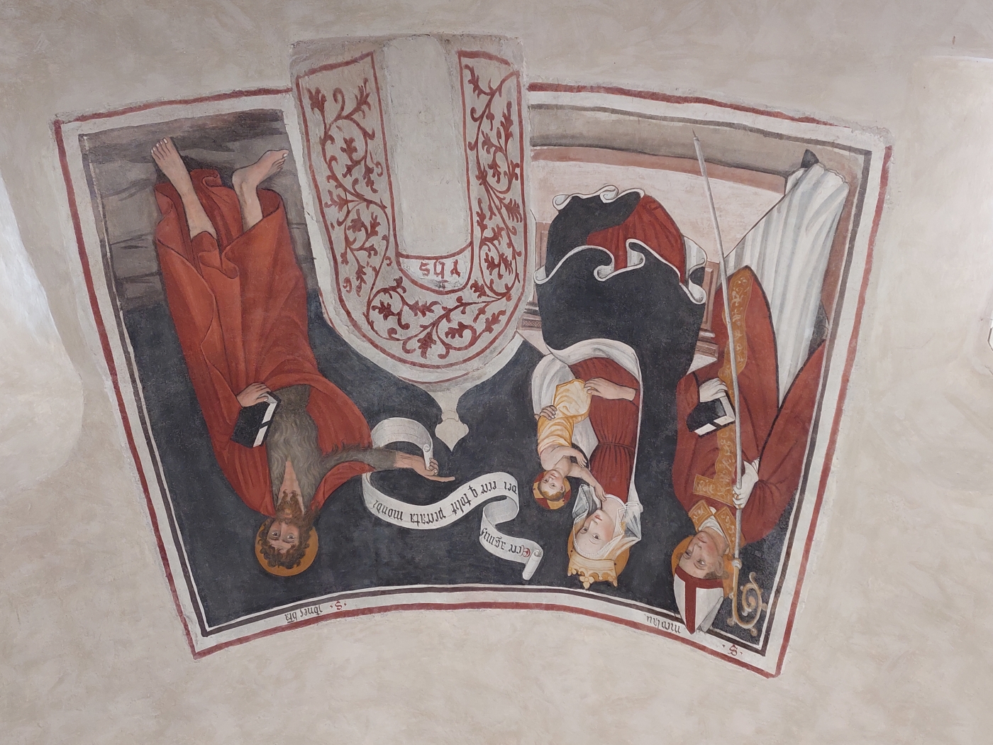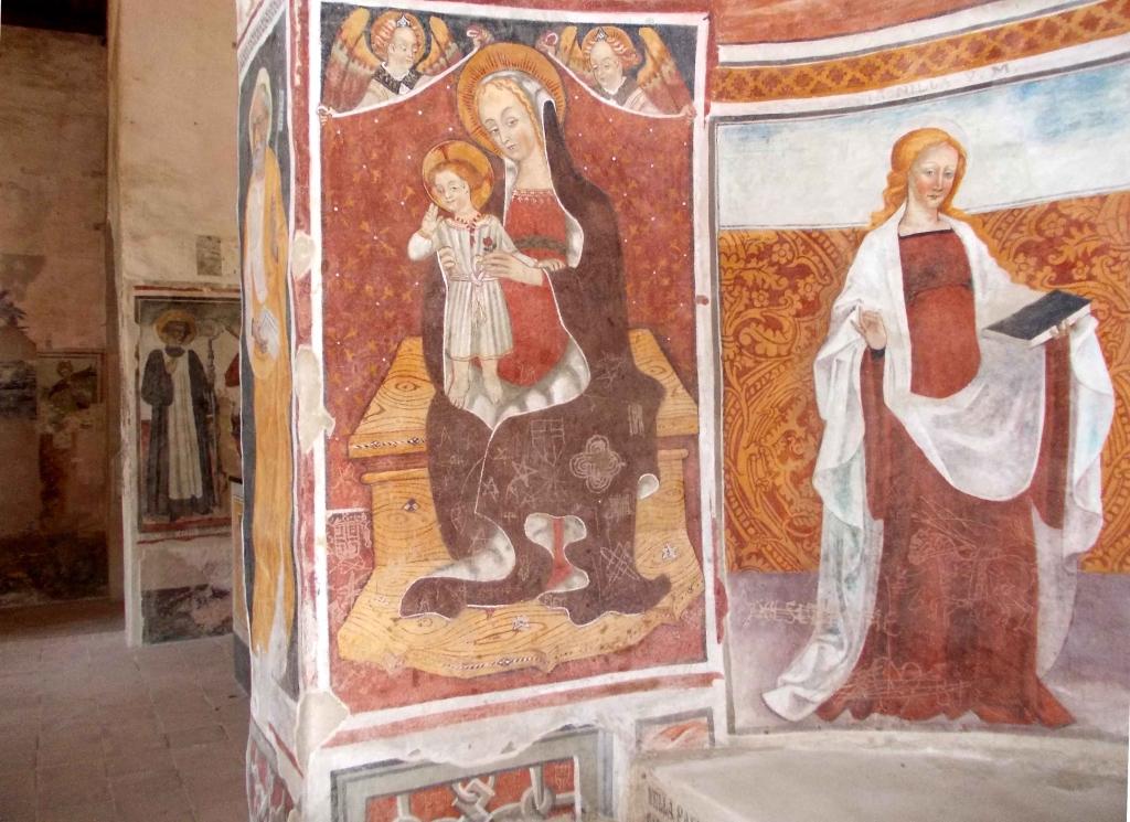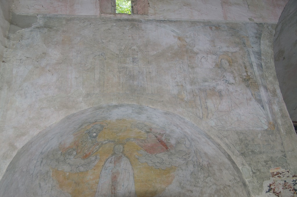 affreschi che vanno dall'XI secolo al '500 quando artisti dell'atelier di Hans Clemer realizzarono una Annunciazione per la zona absidale sinistra. |