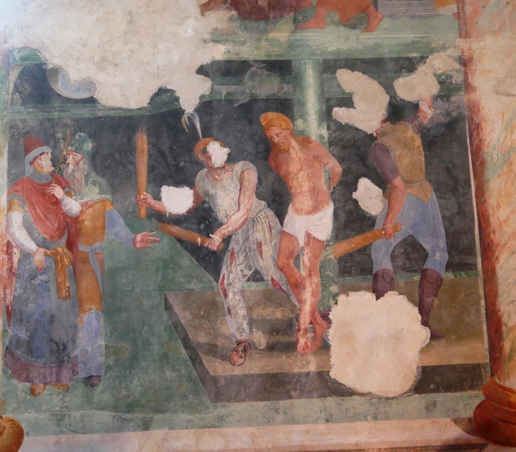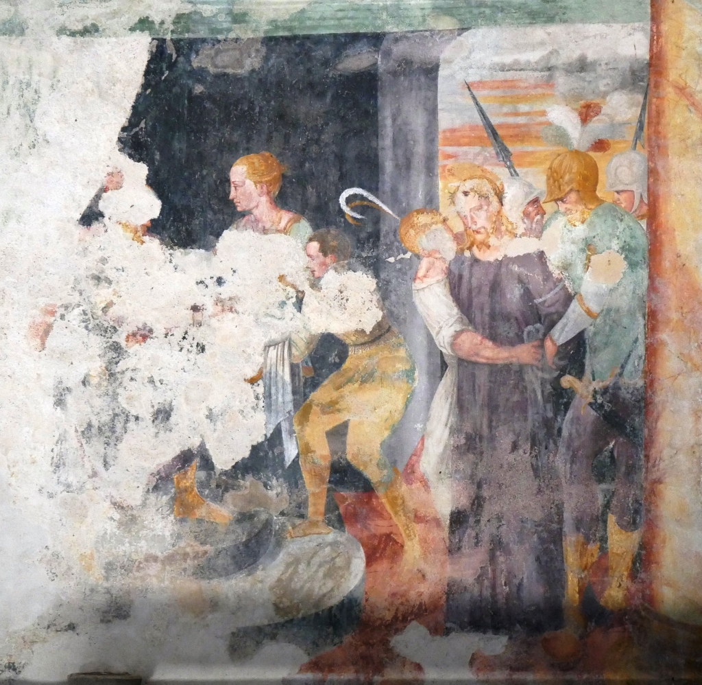 Interno: ciclo di affreschi del 1573 narranti la Passione del Cristo. |