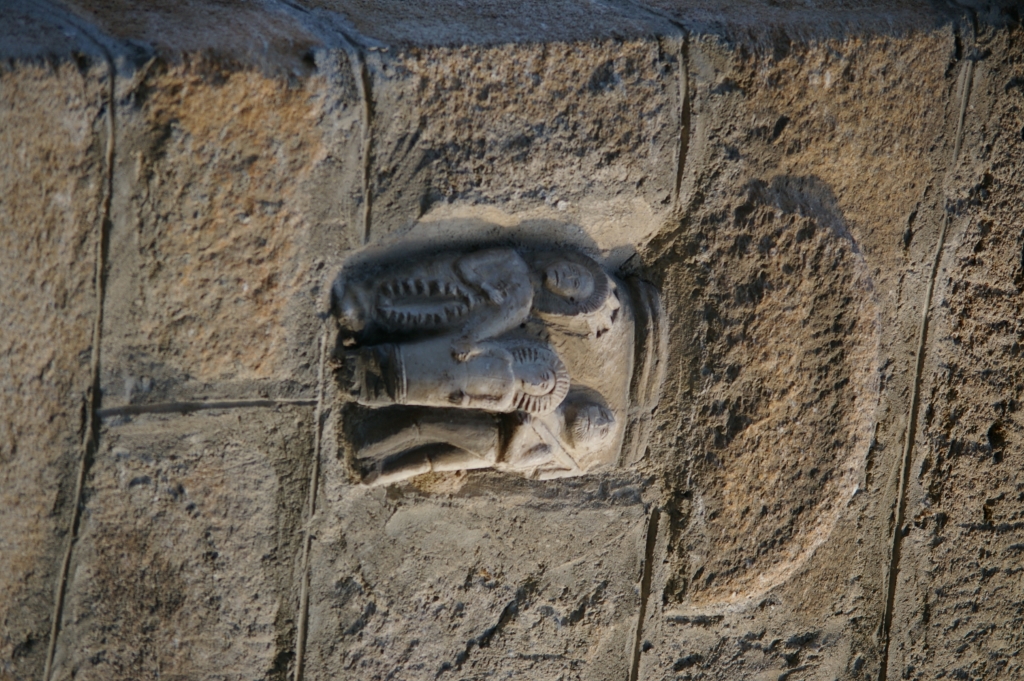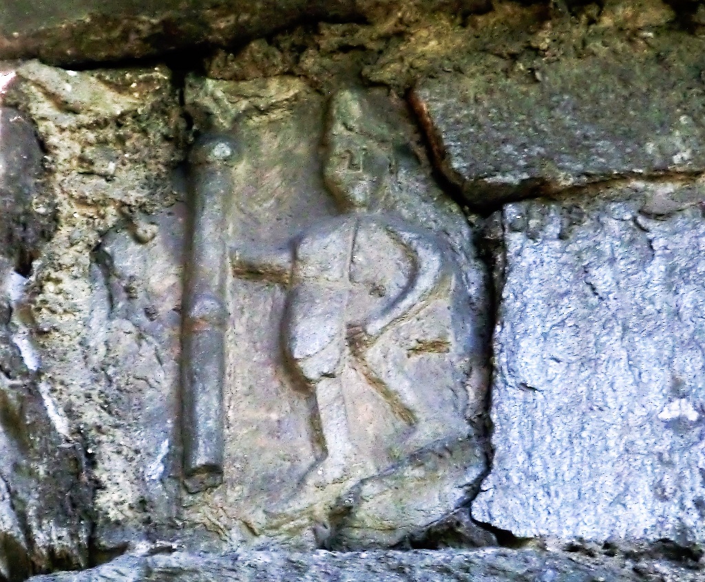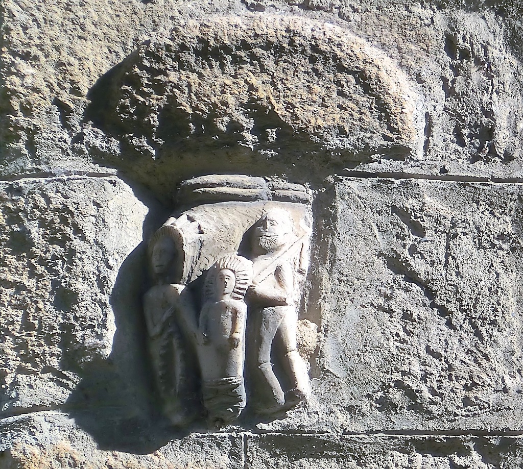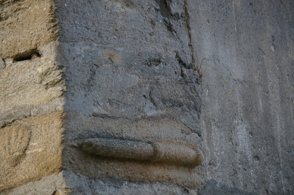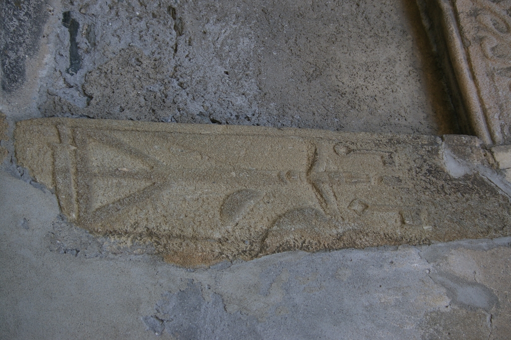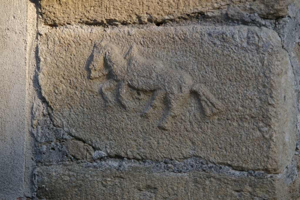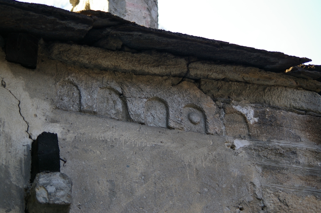 Esterno: sui muri perimetrali interessanti sculture primitive, paleocristiane, della cappella antica o di un vicino cimitero. |